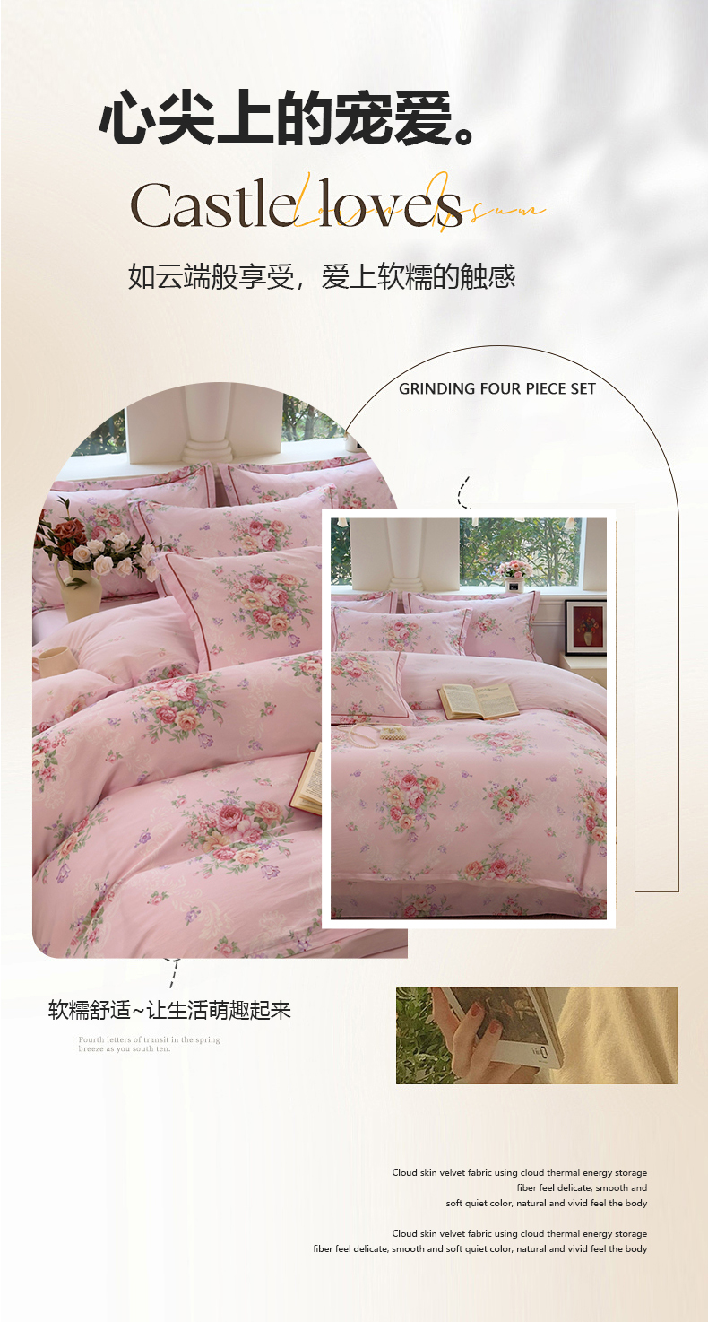 当前位置: 91家纺网 > 商品网购 > 床品套件 > 四件套 > 全棉普通四件套 > 铭博家纺 2026新款100%全棉纯棉四件套第一批 云舒花-粉