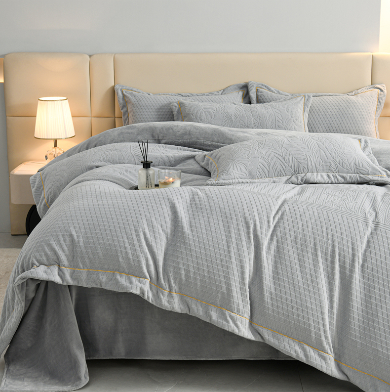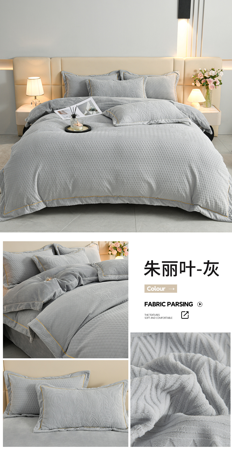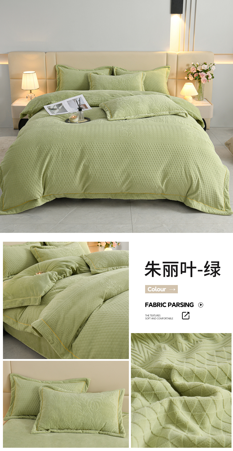 当前位置: 91家纺网 > 商品网购 > 床品套件 > 四件套 > 牛奶绒四件套 > 优家居工厂店 2026新款高克重240克雕花烂花夹棉床盖四件套床单四件套牛奶绒床裙四件套 朱丽叶-绿