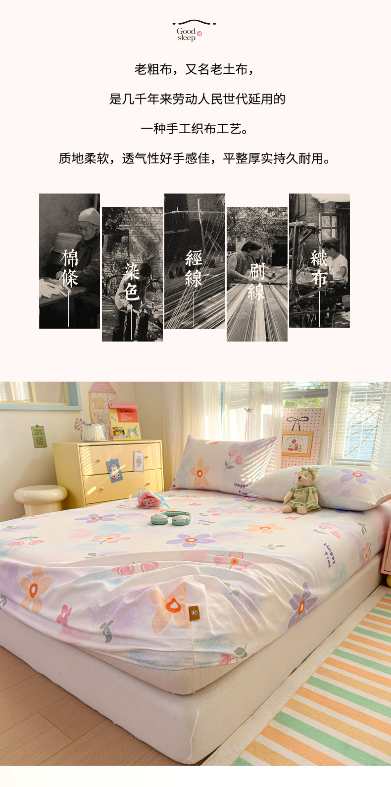 商品名称:女子家纺 2026新款全棉老粗布床笠 梦境