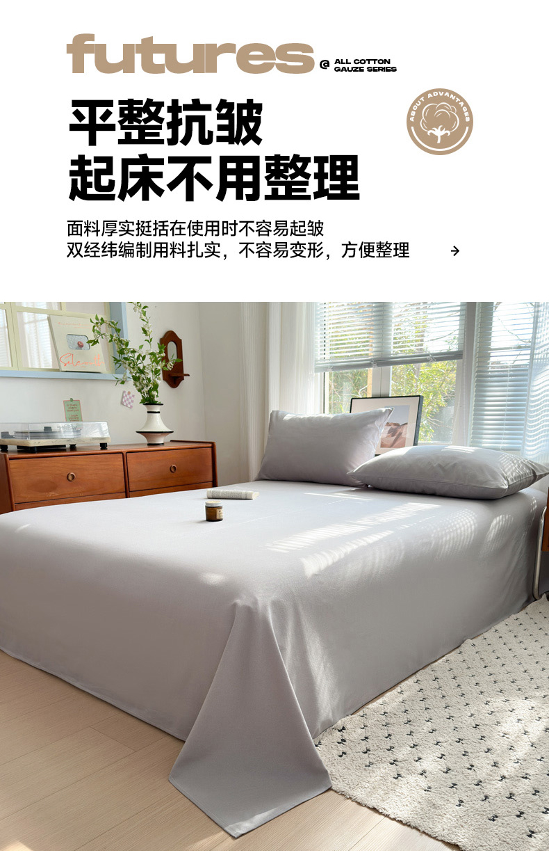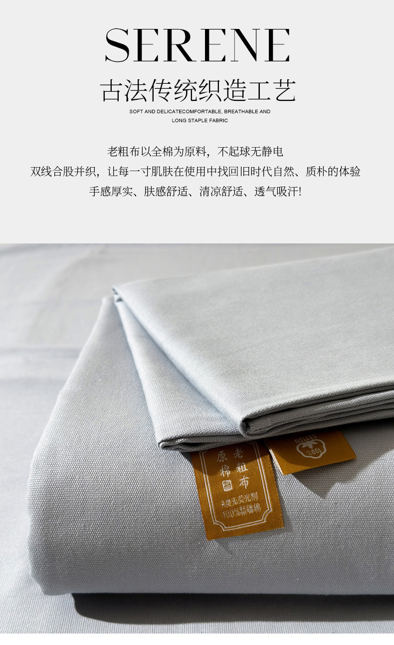 女子家纺 2026新款全棉老粗布床单 雪花银