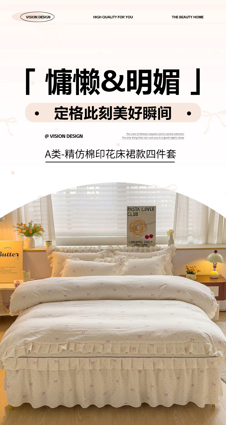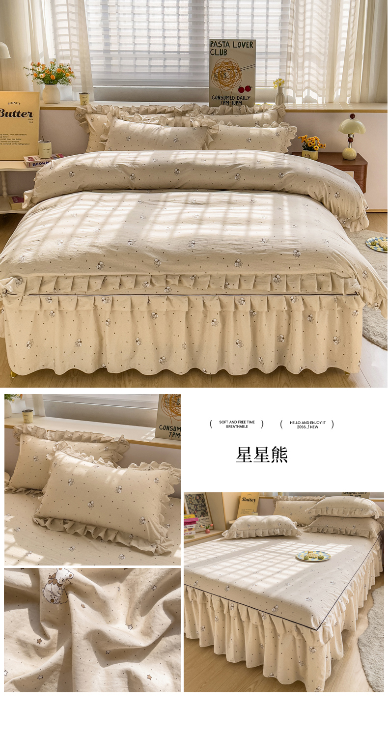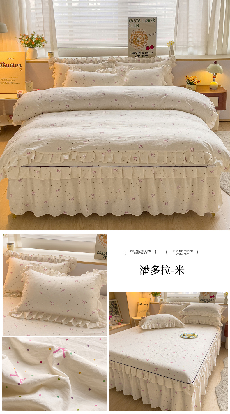 当前位置: 91家纺网 > 商品网购 > 床品套件 > 四件套 > 化纤普通四件套 > 优家居 2026新款精仿棉床裙四件套水洗棉韩版公主风花边床裙单被套直播外贸定制 潘多拉-米
