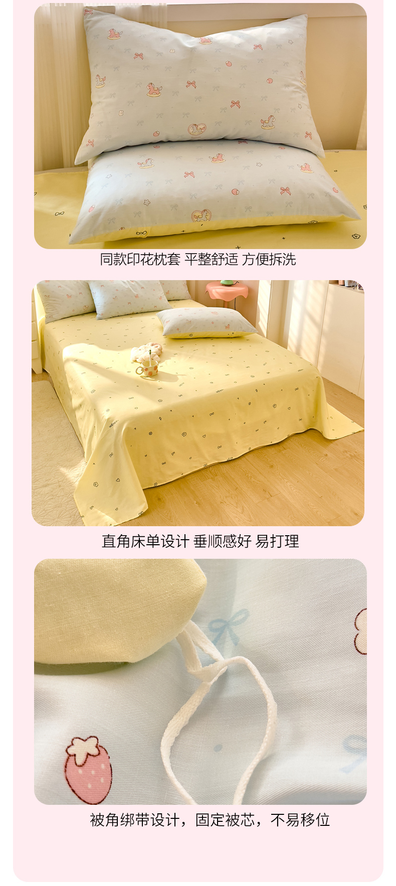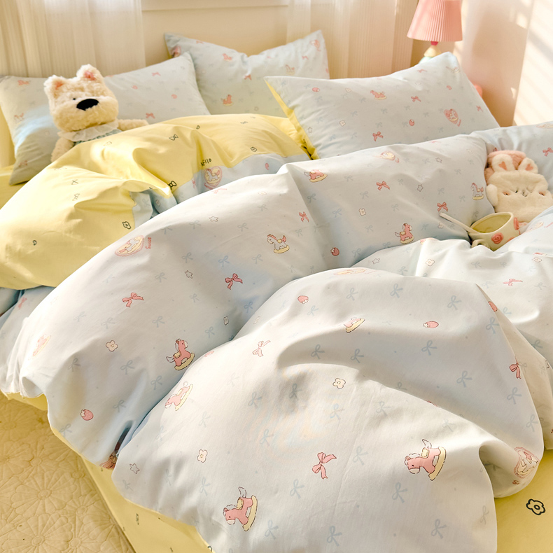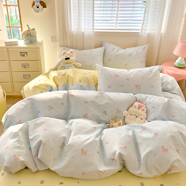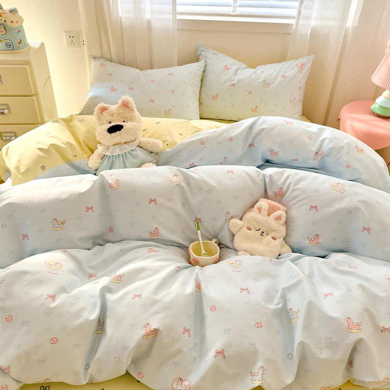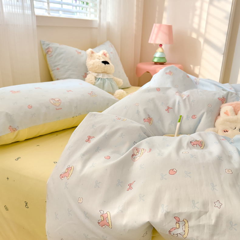 当前位置: 91家纺网 > 商品网购 > 床品套件 > 四件套 > 全棉普通四件套 > DoDo 兜兜 2026春夏新款全棉纯棉可爱卡通四件套 草莓小马-蓝