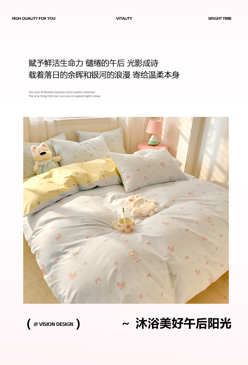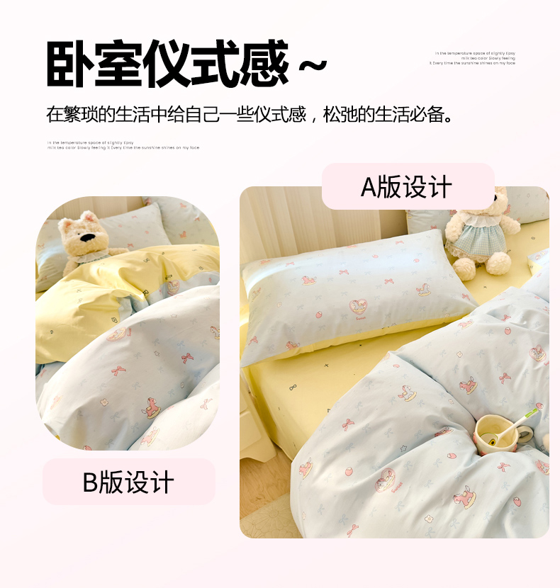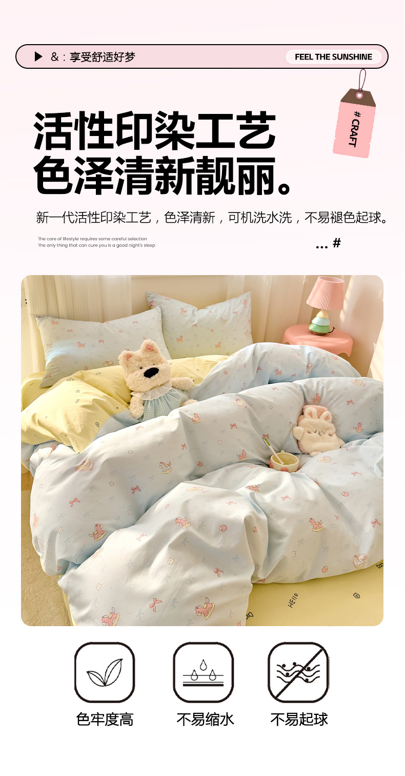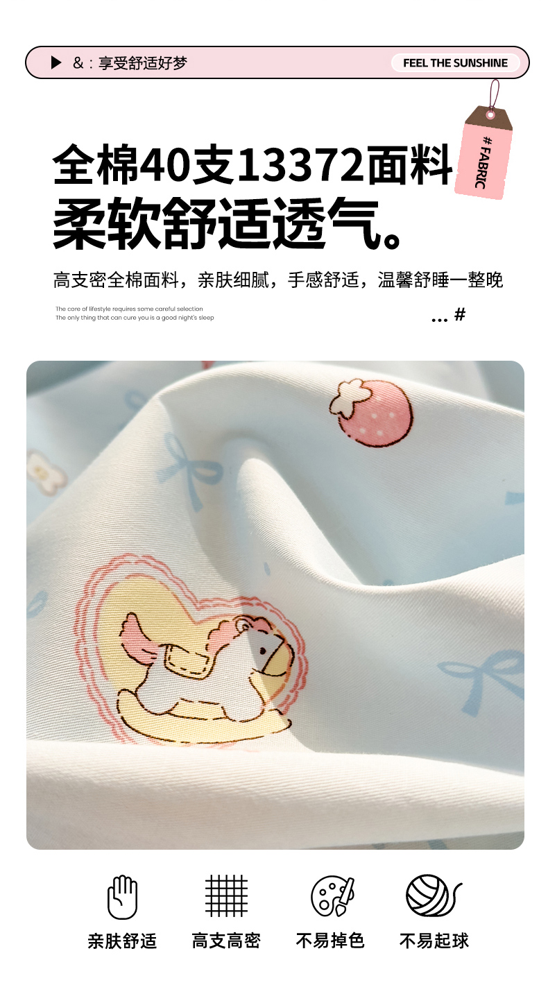 当前位置: 91家纺网 > 商品网购 > 床品套件 > 四件套 > 全棉普通四件套 > DoDo 兜兜 2026春夏新款全棉纯棉可爱卡通四件套 草莓小马-蓝