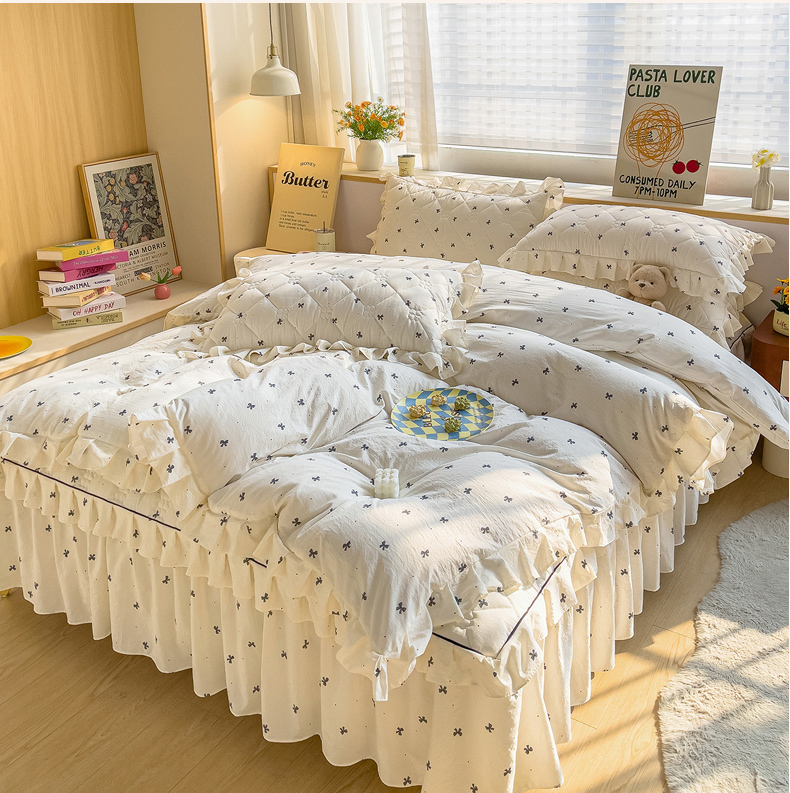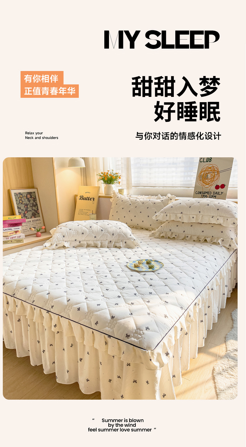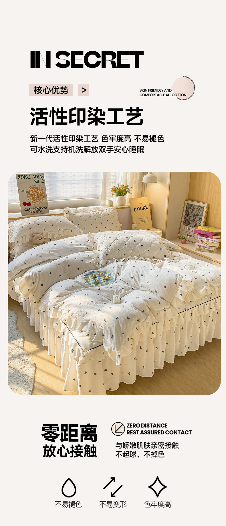 当前位置: 91家纺网 > 商品网购 > 床品套件 > 四件套 > 其它四件套 > 优家居工厂店 2026新款精仿棉夹棉床裙四件套水洗棉韩版公主风花边床裙被套直播外贸定制 情人节