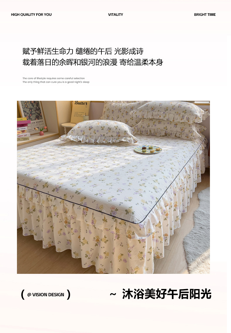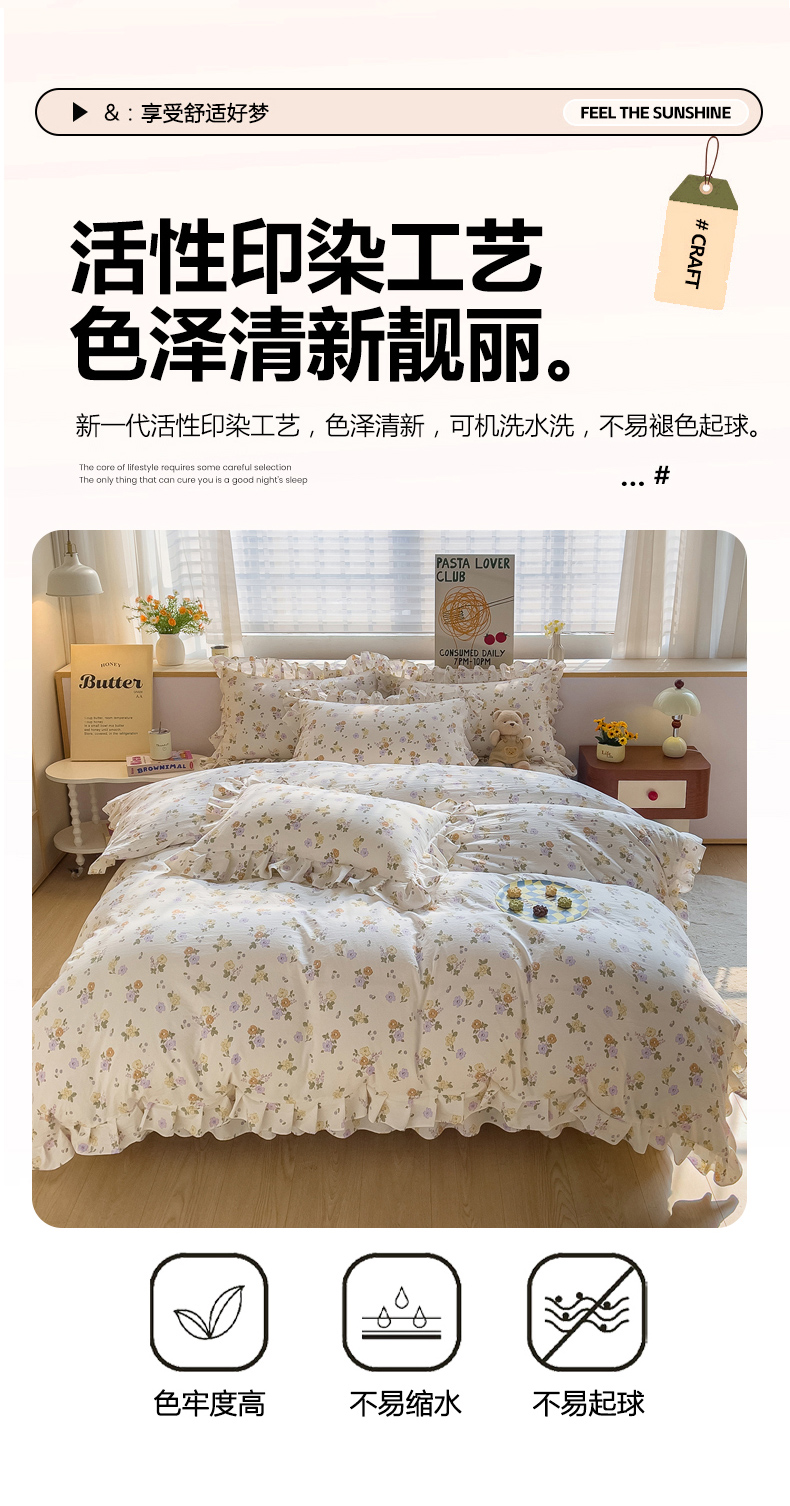 当前位置: 91家纺网 > 商品网购 > 床品套件 > 四件套 > 其它四件套 > 优家居工厂店 2026新款精仿棉床裙四件套水洗棉韩版公主风花边床裙单被套直播外贸定制 海芋恋