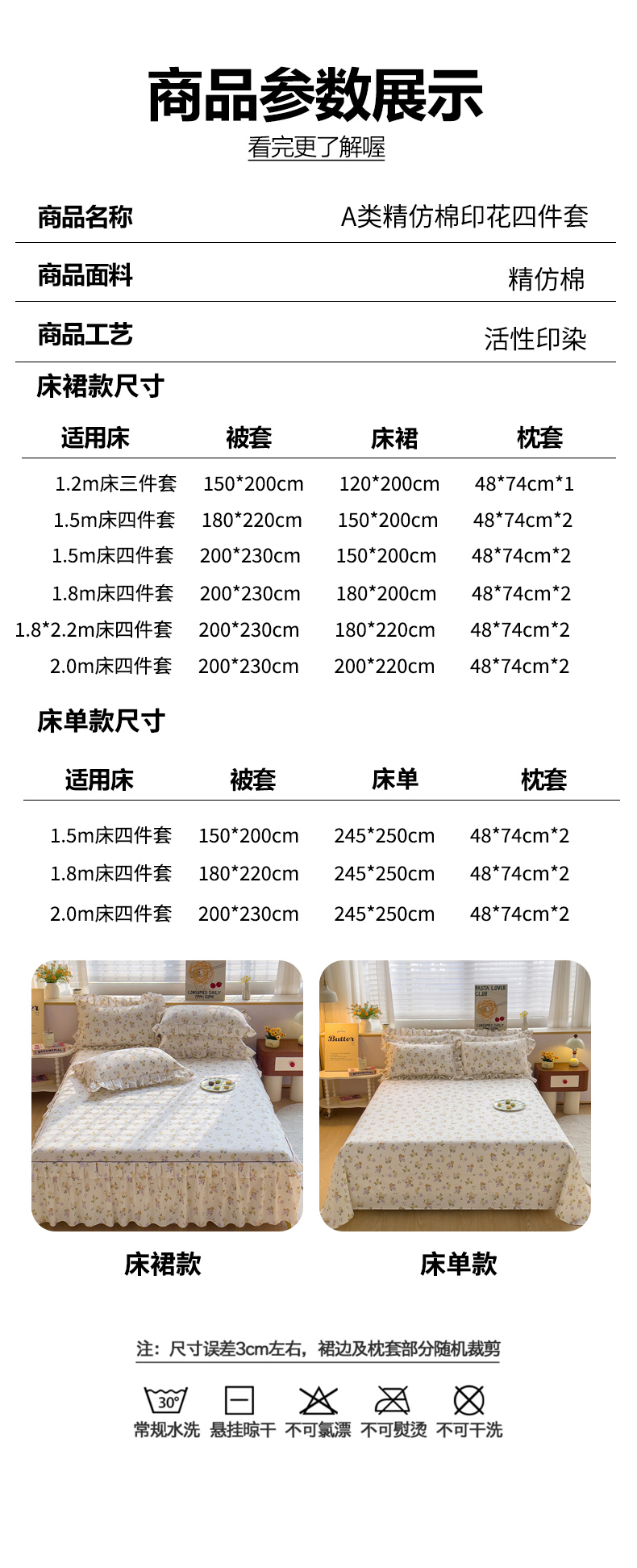 【床裙款】1.8x2.2四件套-被套200x230 | ¥65.00 |