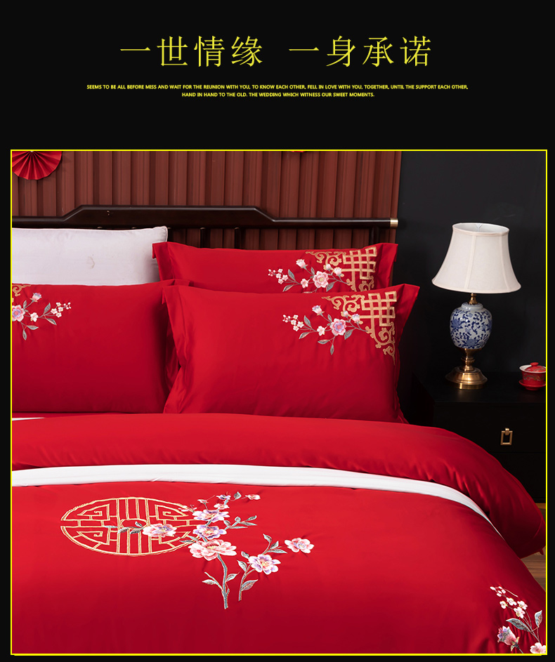 (总)慕她家纺 2026慕她大花工艺款全棉纯棉婚庆四件套大红色刺绣结婚床上用品,鸳鸯贺喜,喜韵江山,喜结连理,花开志喜,喜嫁,双喜临门,天赐良缘,龙凤添喜,龙凤团圆,缔结良缘 红,缔结良缘 金,凤冠霞帔,福喜龙凤,欢喜龙凤,佳偶天成,龙凤呈祥,龙凤佳缘,龙凤送子,龙凤祥和,龙翔凤舞,龙啸凤吟,甜蜜龙凤,早生贵子,挚爱龙凤,百子登科,恩爱情深,繁花似锦,恋曲牡丹,美丽红妆,如愿,诗韵牡丹,走进幸福 红,走进幸福 金,百子江山,好运吉祥,吉祥龙凤,名门龙凤,眷恋龙凤,天生一对,执手龙凤,至尊龙凤,子孙满堂,百子贺喜
