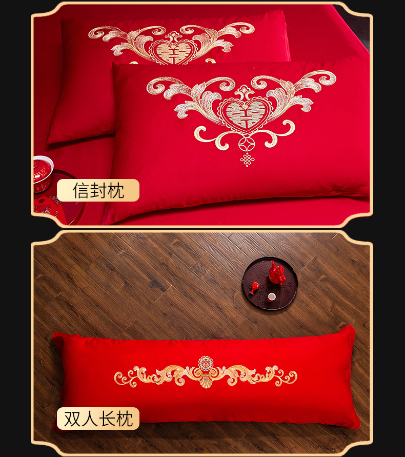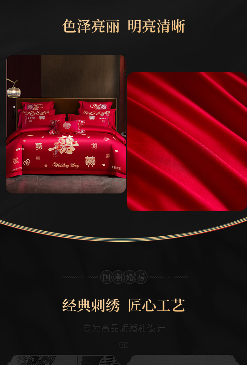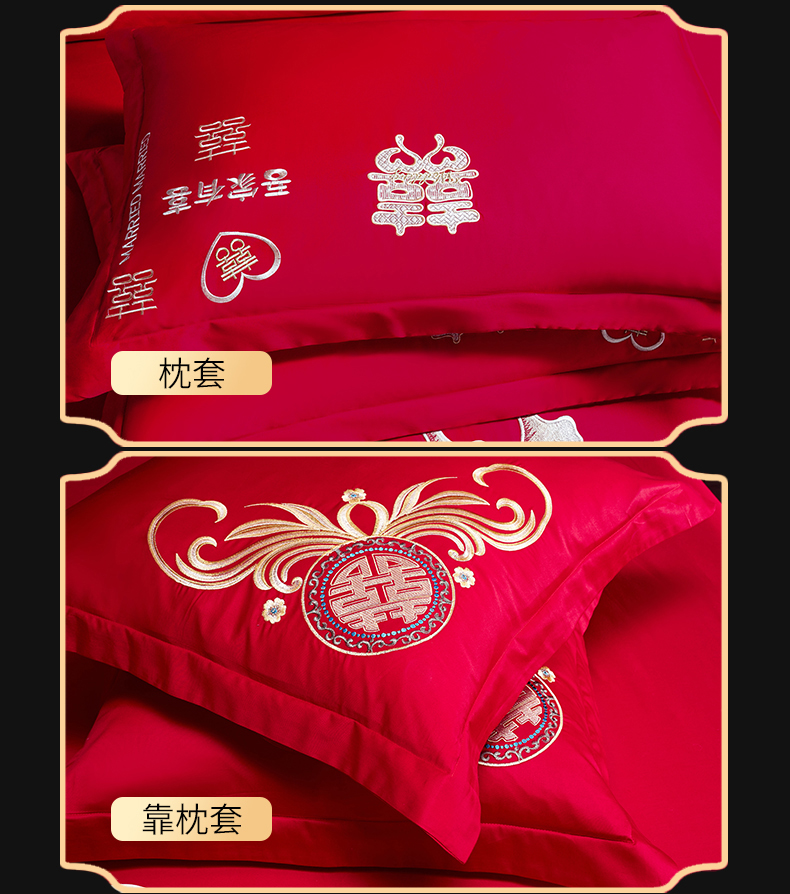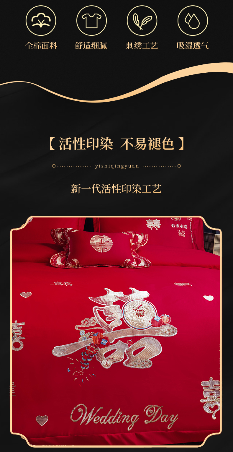 当前位置: 91家纺网 > 商品网购 > 床品套件 > 四件套 > 婚庆四件套 > 慕她家纺 2026年全棉纯棉婚庆四件套大红色刺绣结床上用品 大喜日子