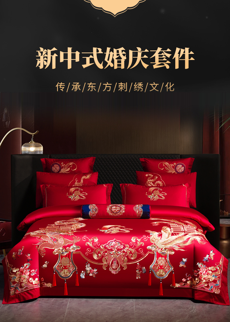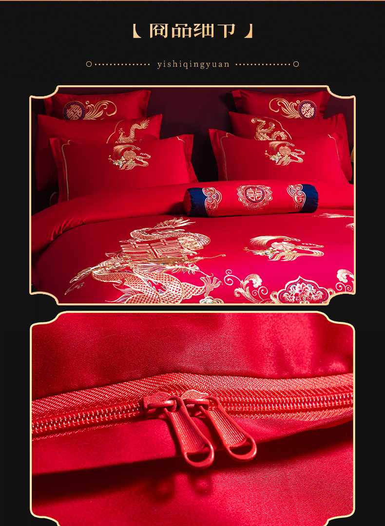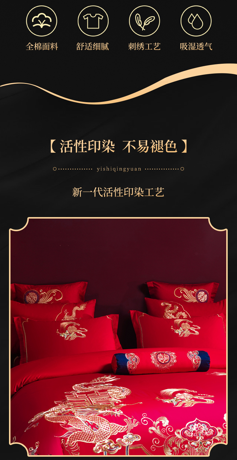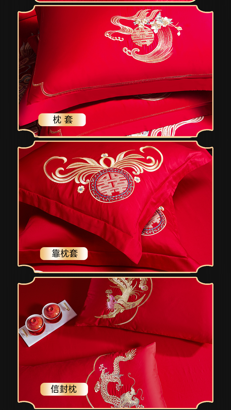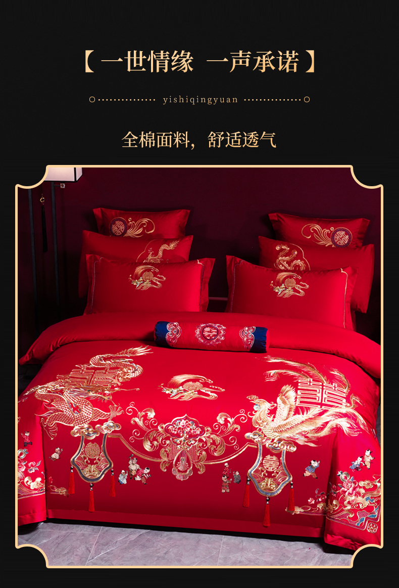 当前位置: 91家纺网 > 商品网购 > 床品套件 > 四件套 > 婚庆四件套 > 慕她家纺 2026年全棉纯棉婚庆四件套大红色刺绣结床上用品 今生相伴