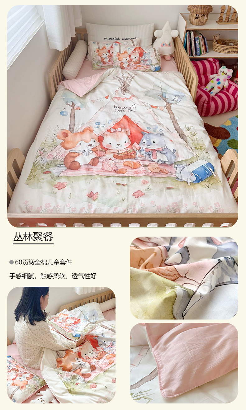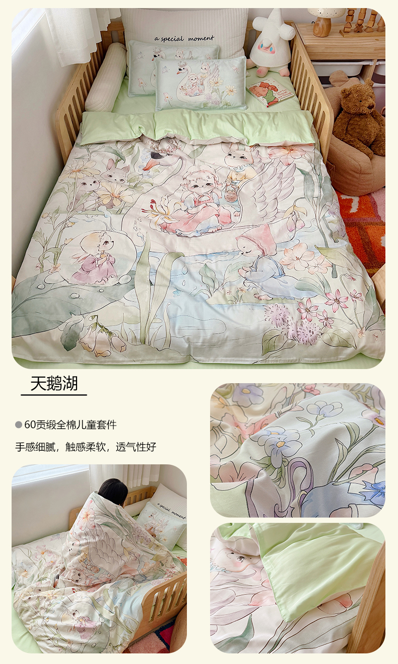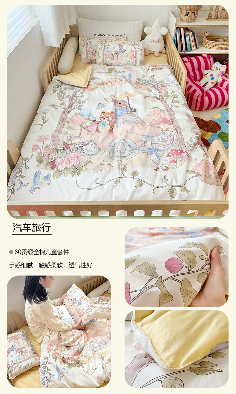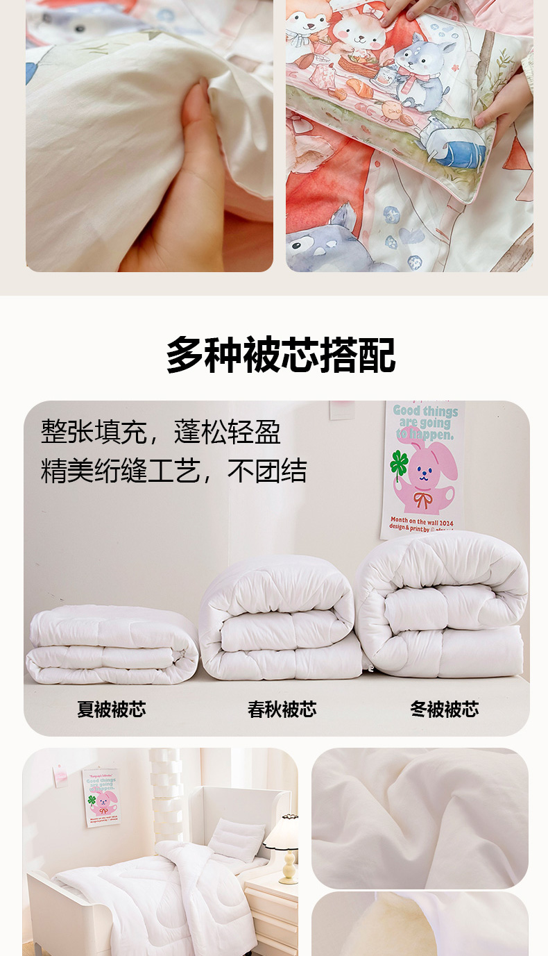 当前位置: 91家纺网 > 商品网购 > 床品套件 > 三件套 > 萌宝家纺 2026新款春夏儿童全棉60贡缎被套幼儿园三件套含芯6件套 摇篮兔子