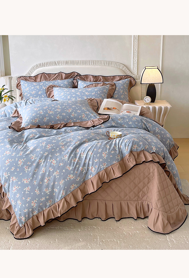 麦田家纺 2026新款花边床盖四件套 椿庭怀蓝