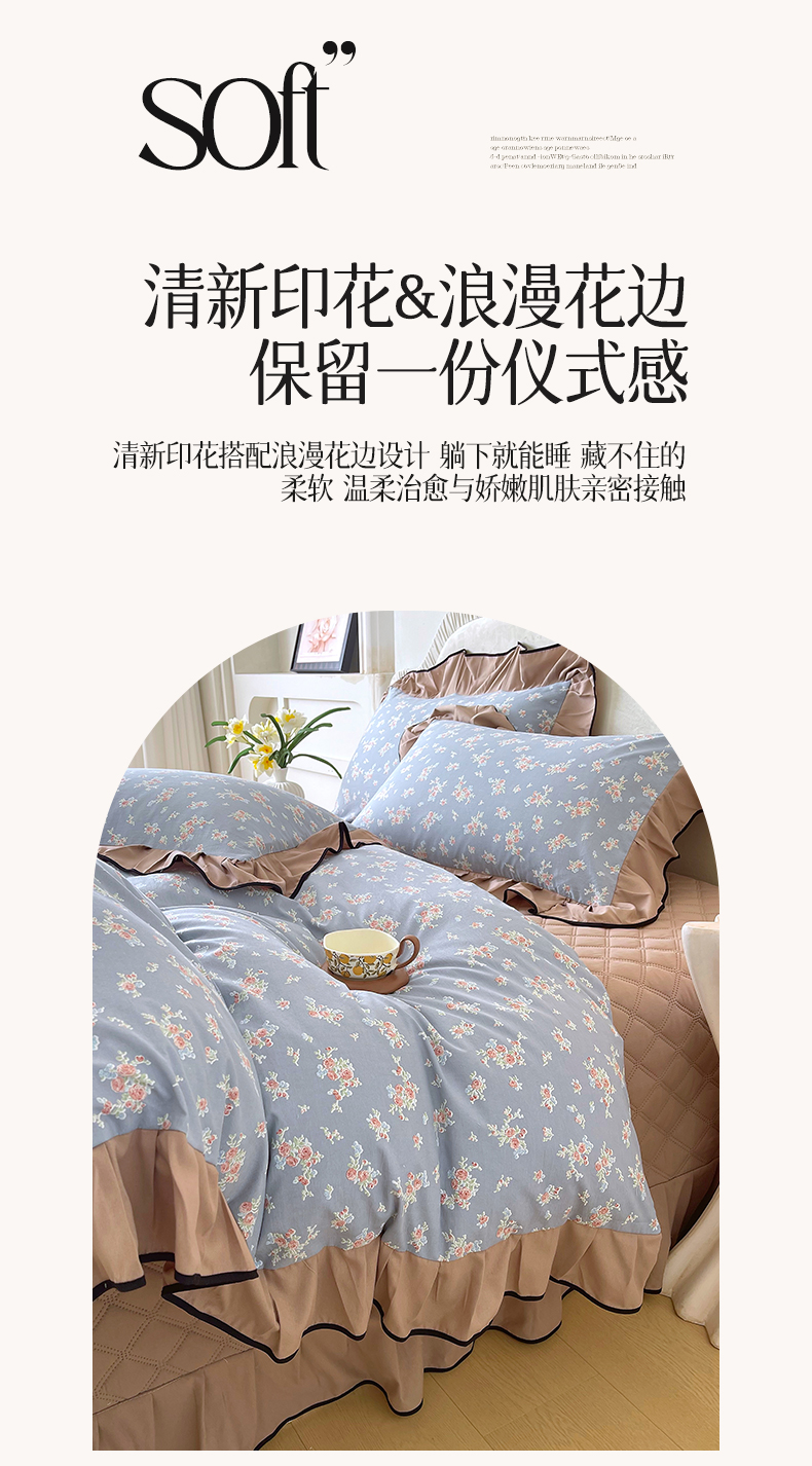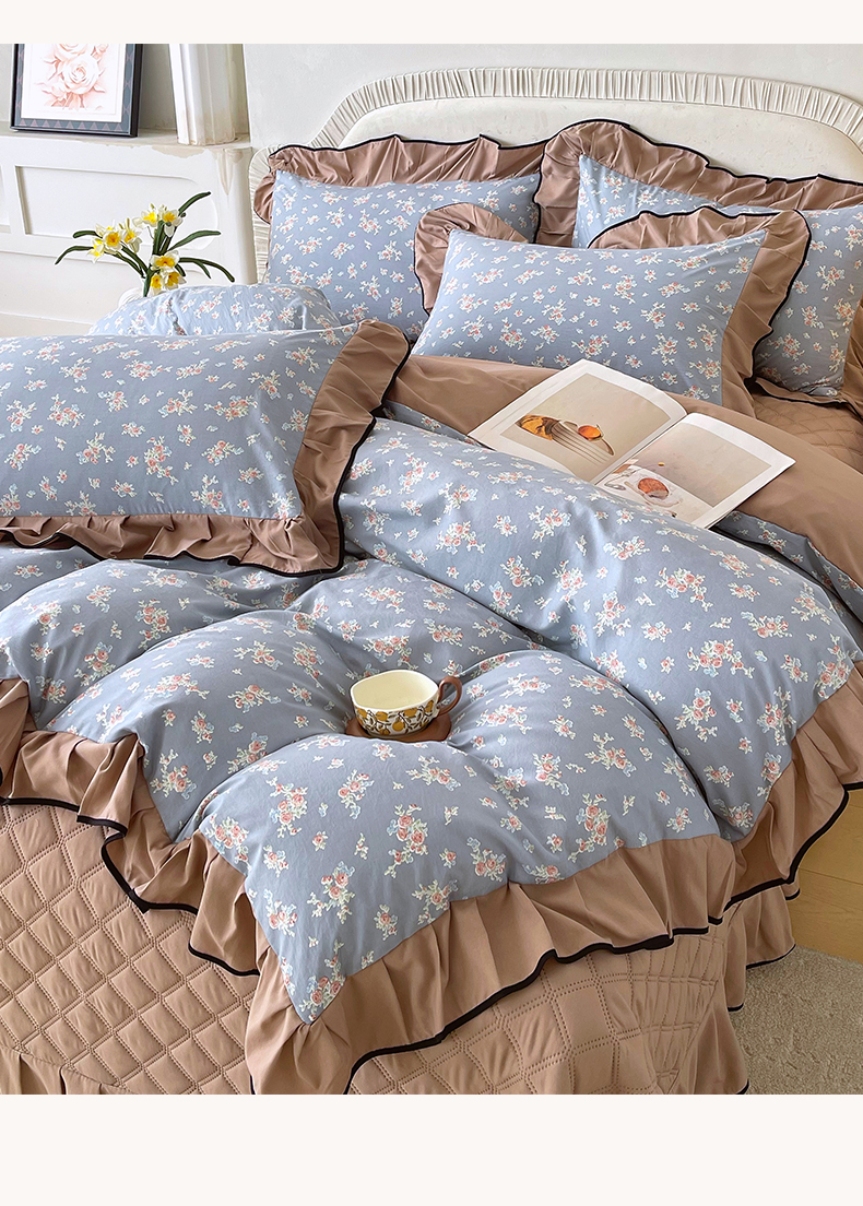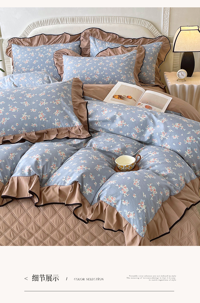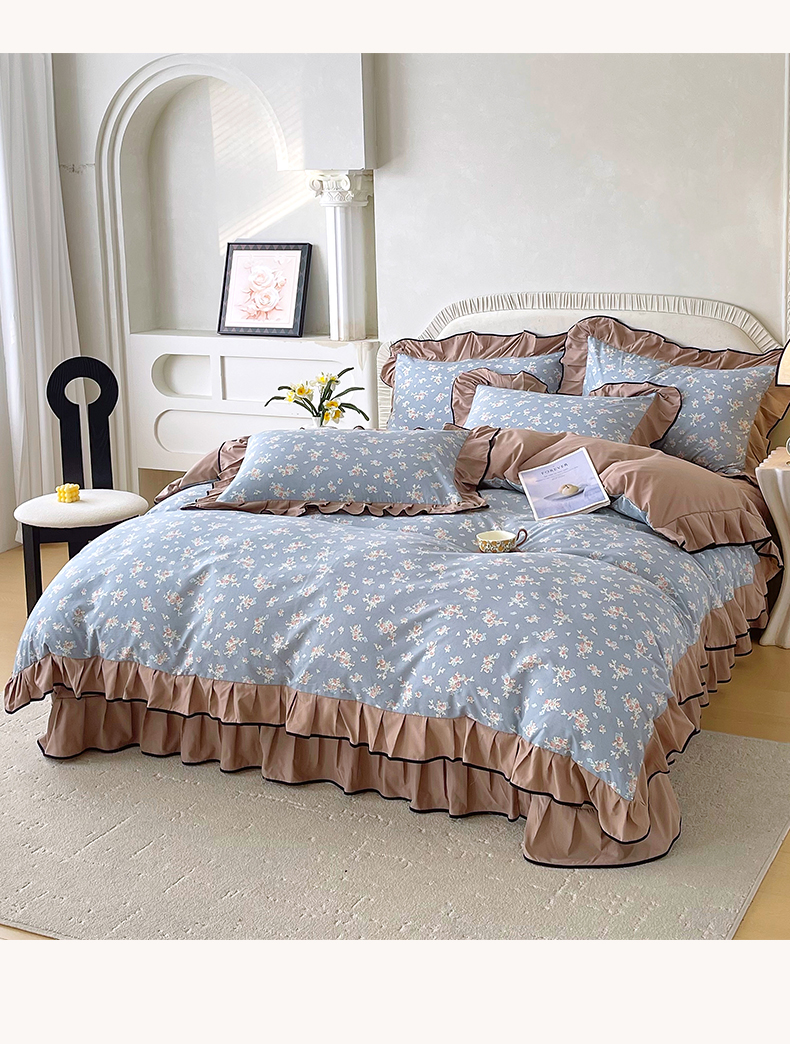 商品名称:麦田家纺 2026新款花边床盖四件套 椿庭怀蓝