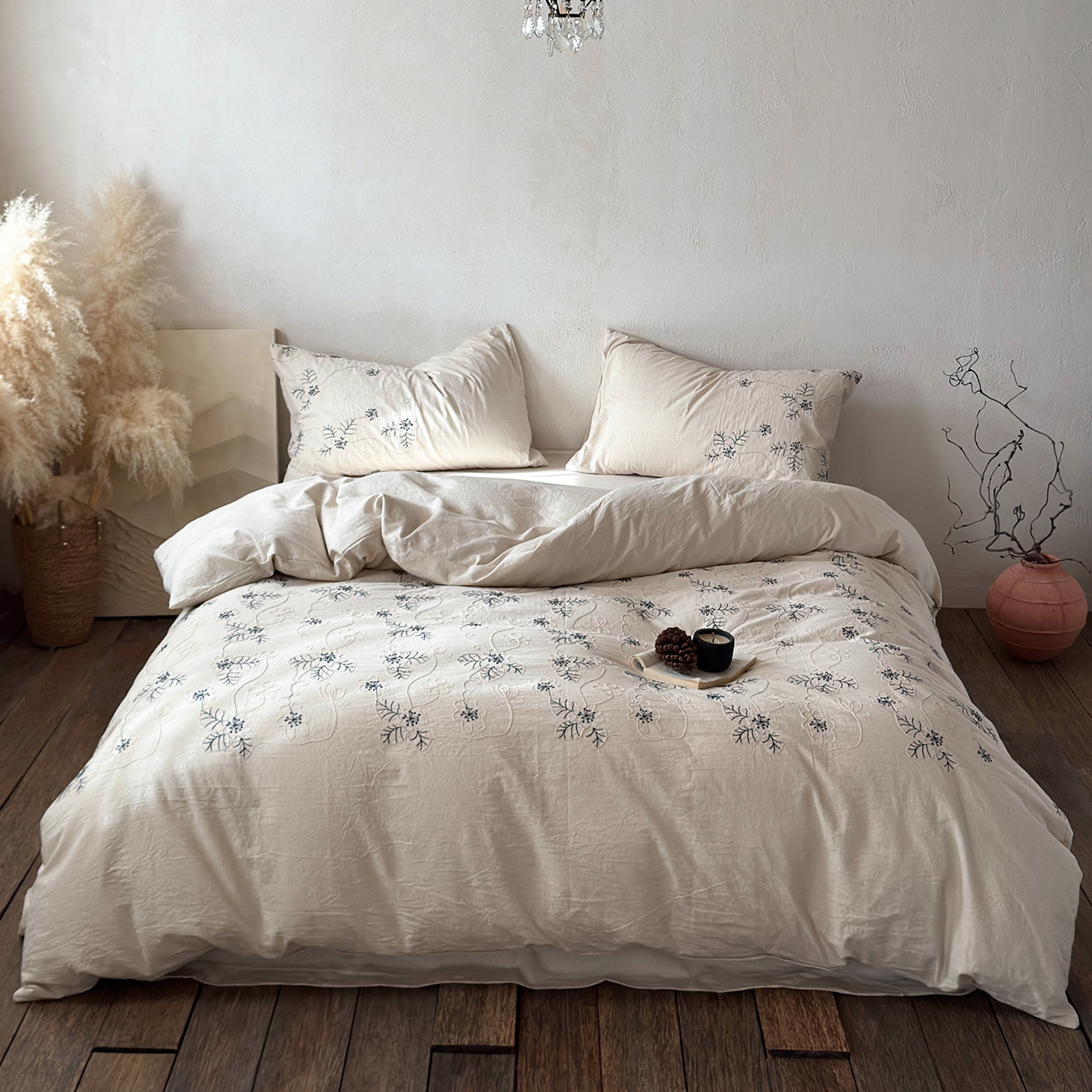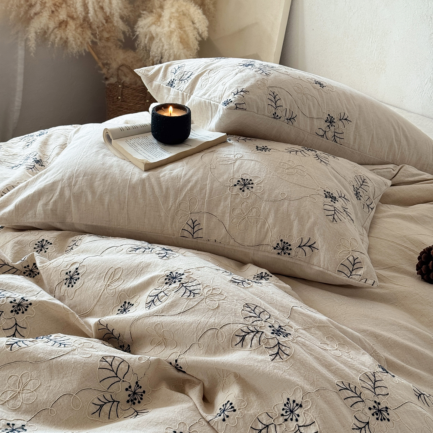 商品名称:淑女公社家纺 2026春夏新款竹节棉麻特种绣花四件套 一亩花田