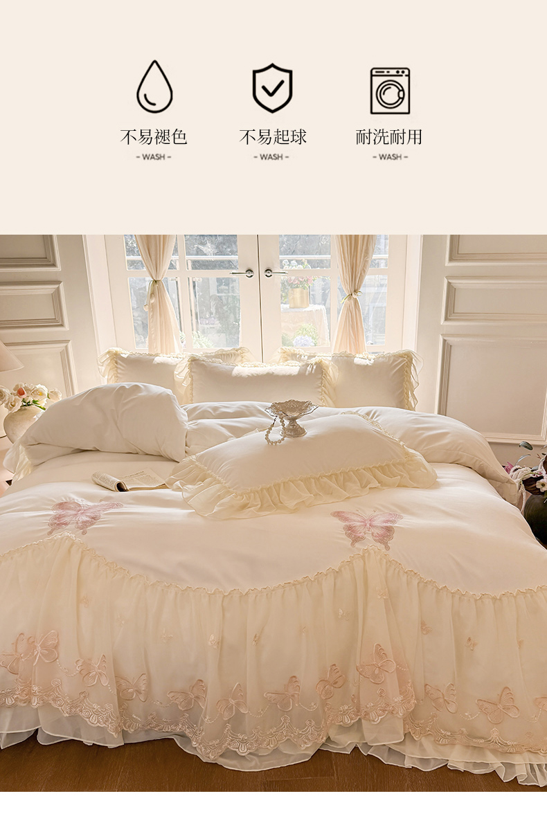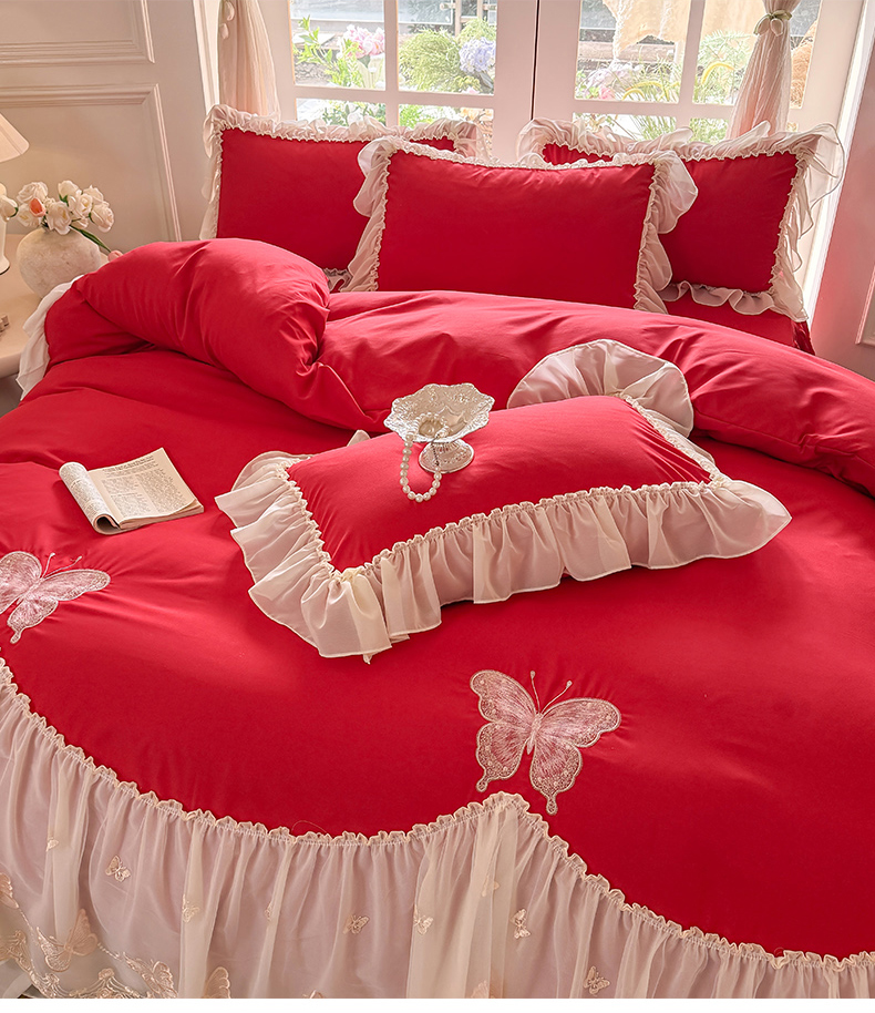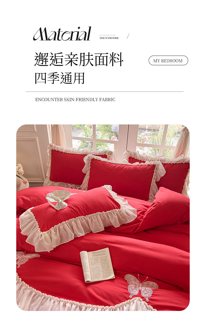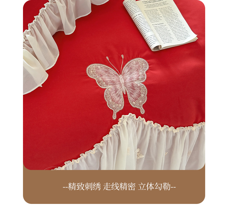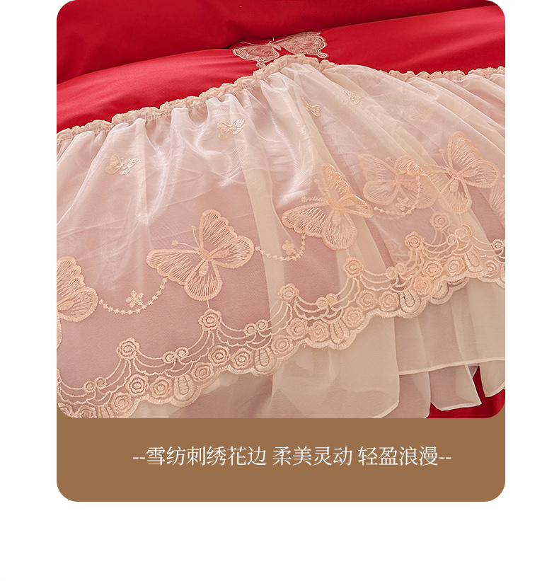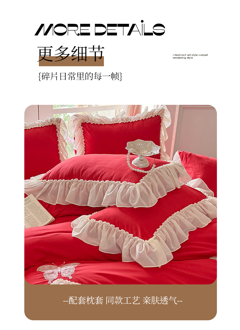 当前位置: 91家纺网 > 商品网购 > 床品套件 > 四件套 > 水洗棉四件套 > 富盛家纺 2026新款水洗亲肤棉雪纺蕾丝刺绣公主风韩版四件套-迷迭香 迷迭香—大红