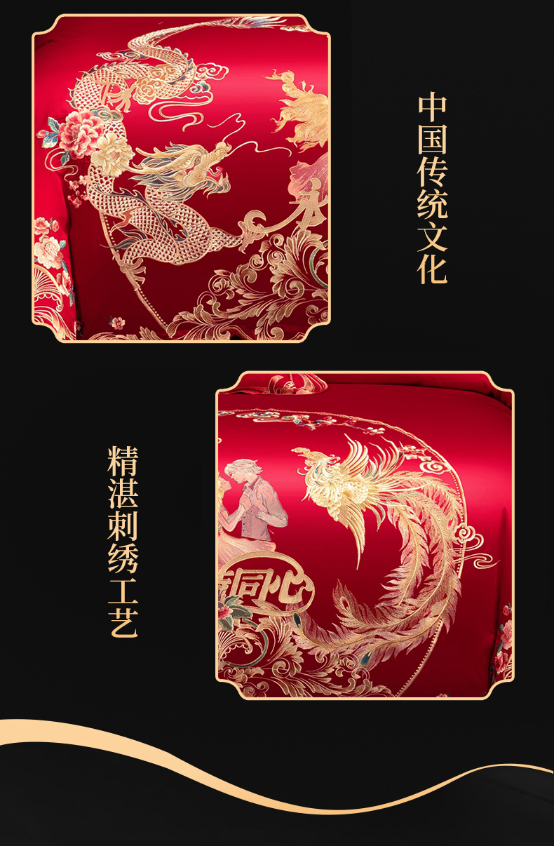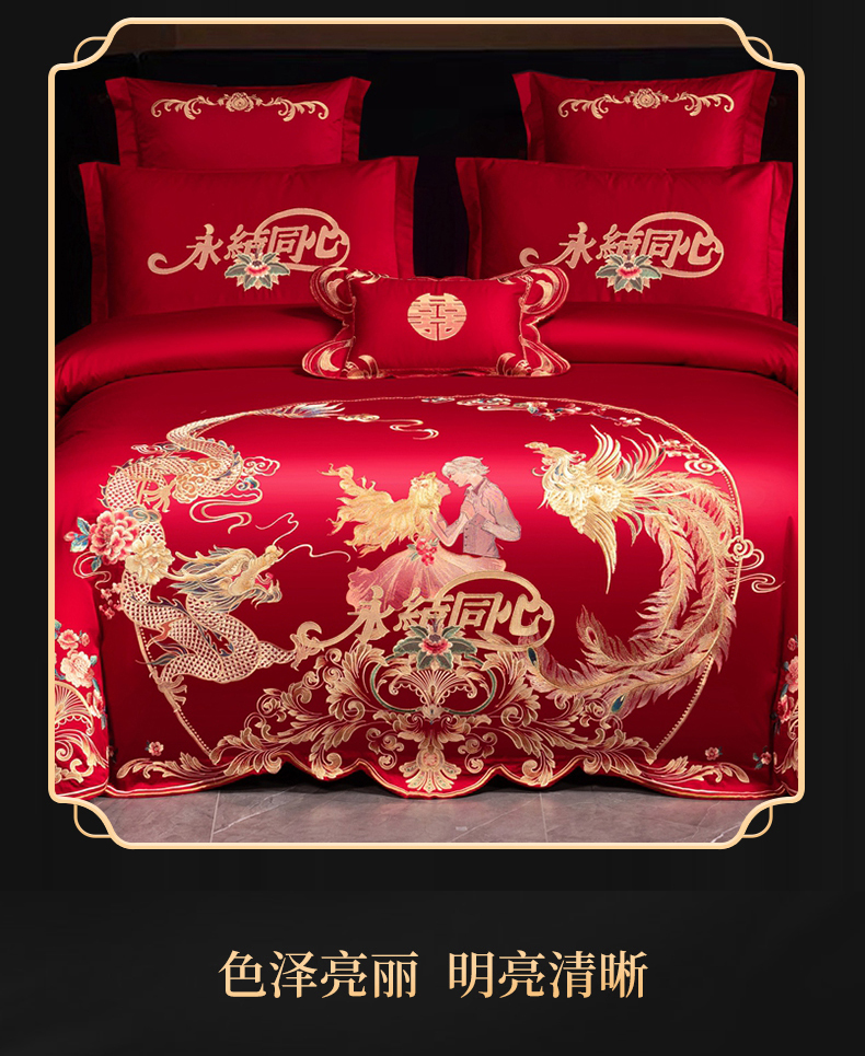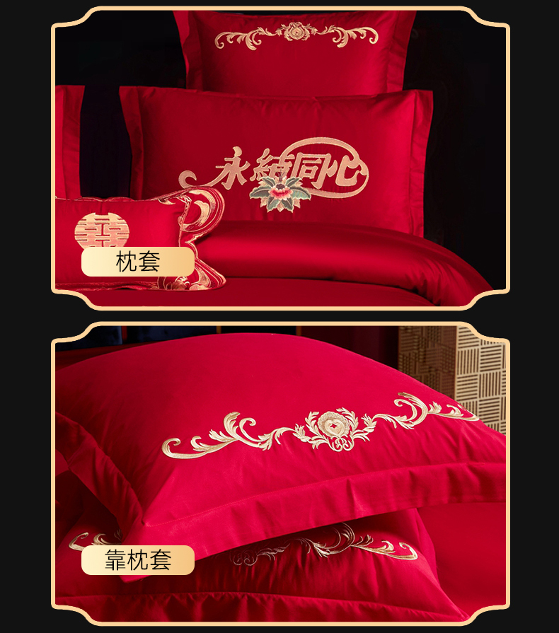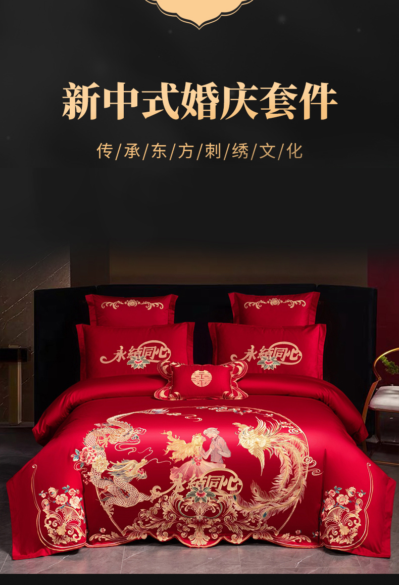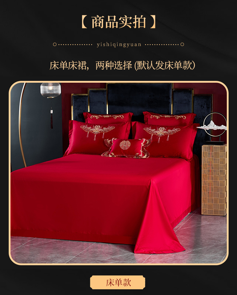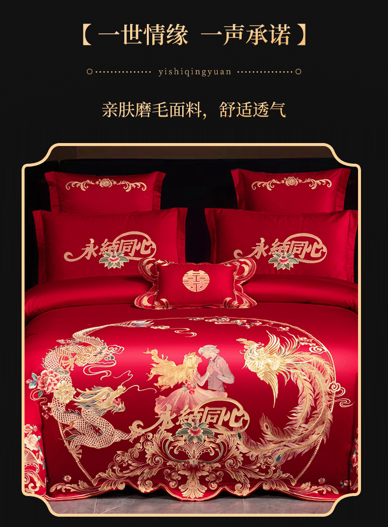 当前位置: 91家纺网 > 商品网购 > 床品套件 > 四件套 > 婚庆四件套 > 慕她家纺 2026年磨毛亲肤棉婚庆四件套大红色刺绣结床上用品 幸福永驻