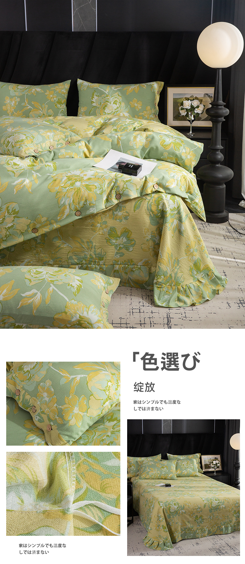 商品名称:库里梦家纺 2026春夏新款直播专供爆款色织复古双层纱四件套 绽放