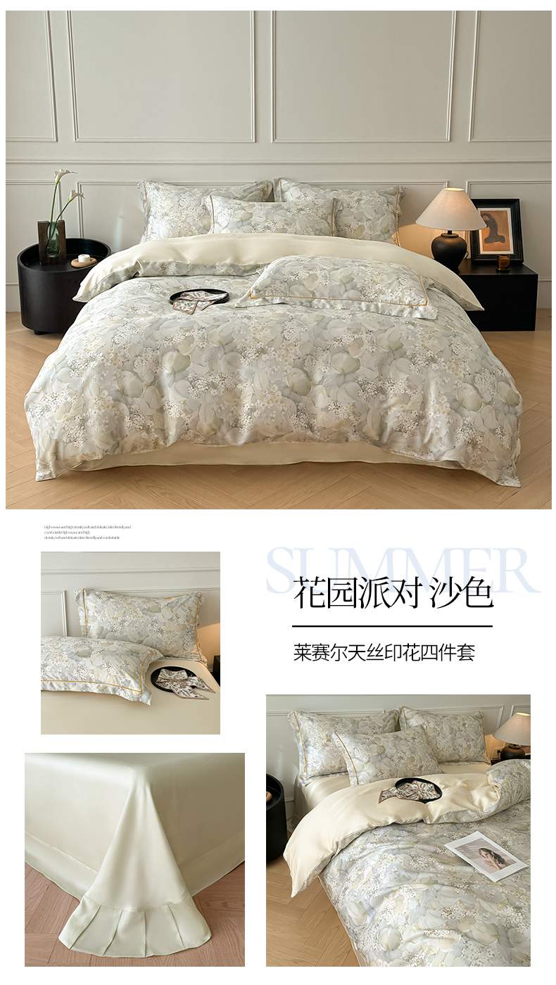 (总)启航家居 2025春夏新款莱赛尔天丝数码印花四件套,半纸叶灰,池禾韵兰,花园派对沙色,梦境之翼兰,梦境之翼绿,小雨录粉,烟花间粉,烟花间绿,樱岛春漫粉,云栖畔灰兰,栀花语粉,紫陌兰,紫陌紫