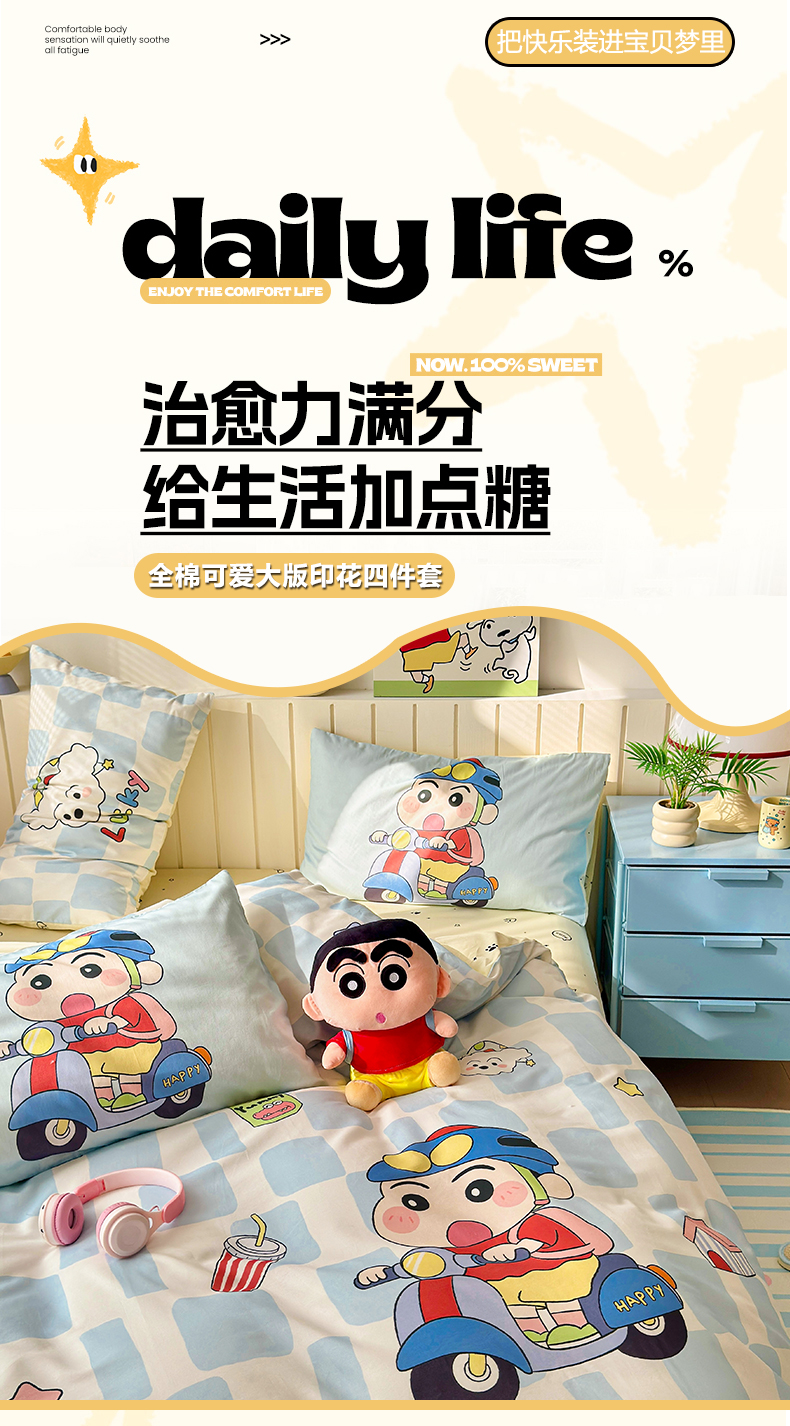 寐居家纺 2026新款全棉大版数码印花四件套 可爱小新