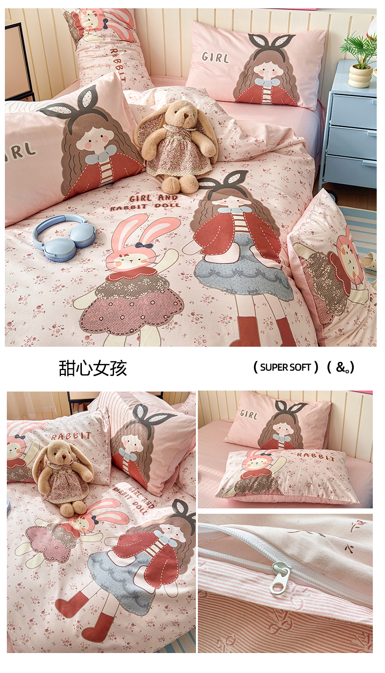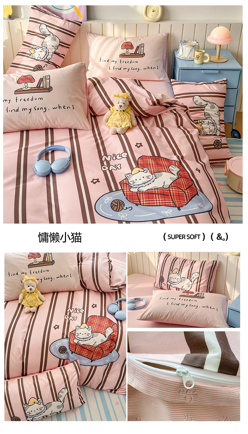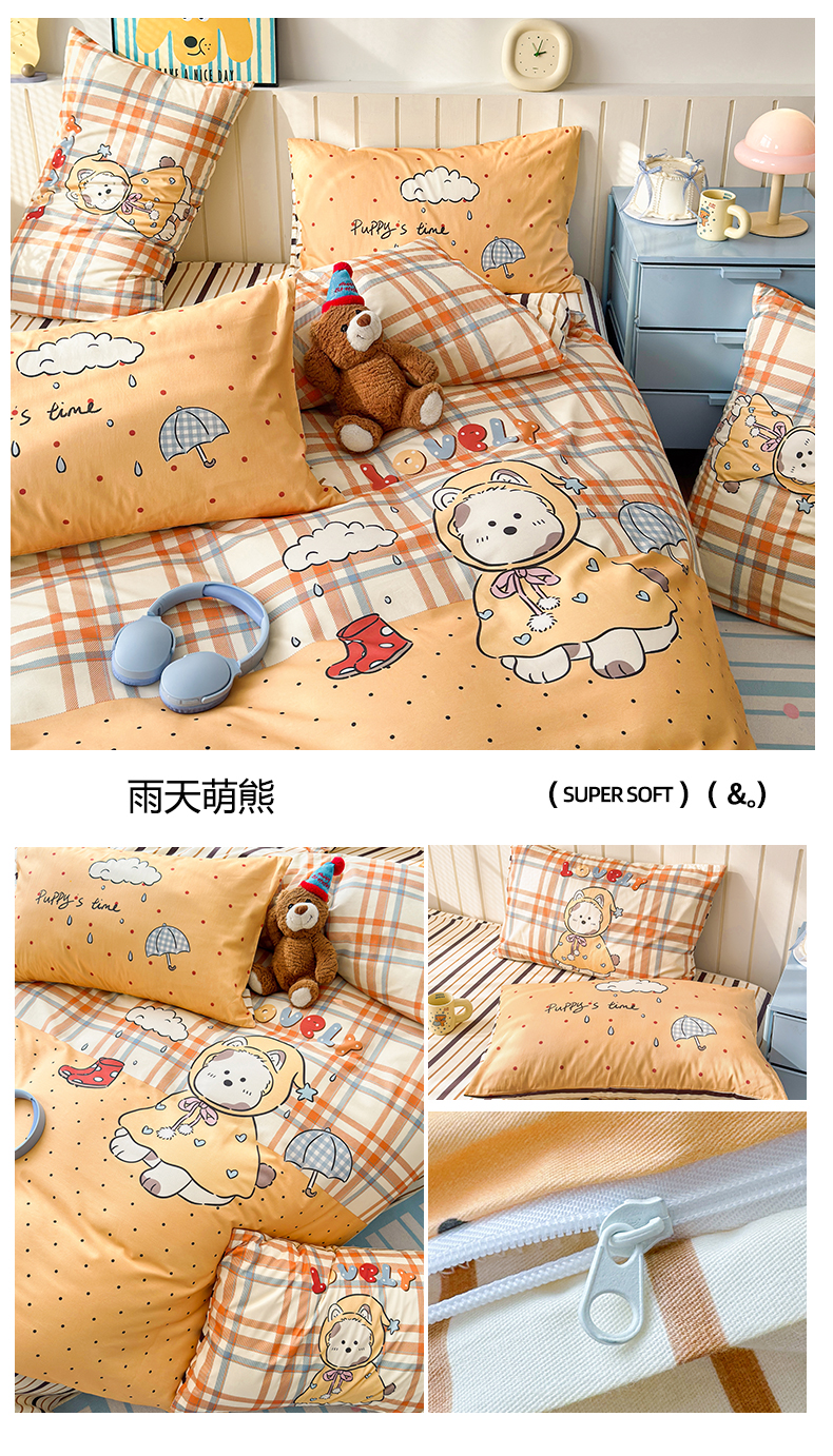 (总)寐居家纺 2026新款全棉大版数码印花四件套,可爱小新,潦草小狗,魔法星人,甜心女孩,慵懒小猫,雨天萌熊