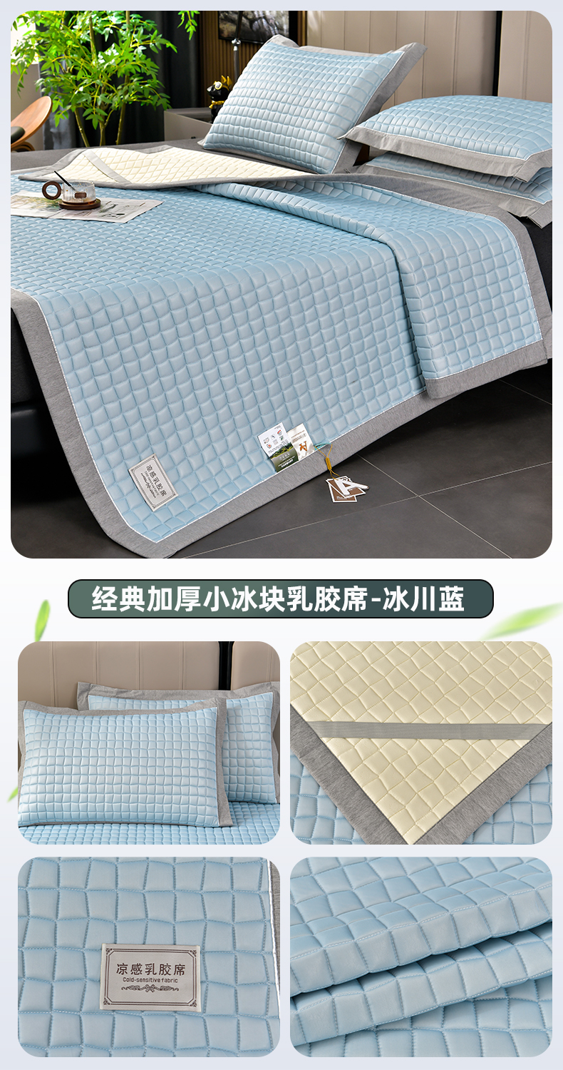 当前位置: 91家纺网 > 商品网购 > 床上用品 > 凉席 > 小牛席业 2026新款经典款-小冰块加厚乳胶席凉席藤席冰藤席竹席空调席草席冰丝席豆豆席乳胶席三件套 经典款-小冰块乳胶席系列(加厚款)-冰川蓝