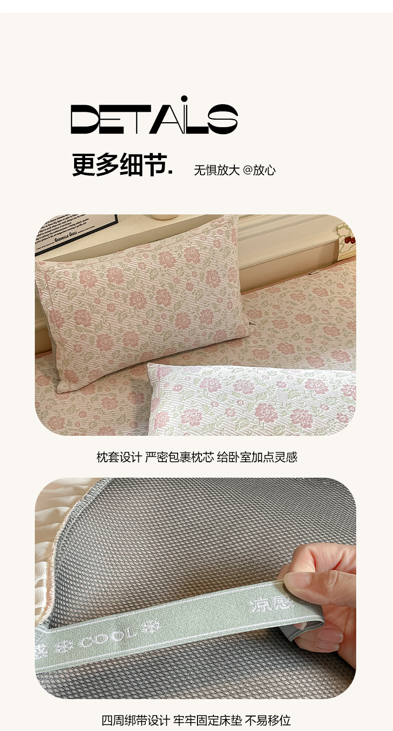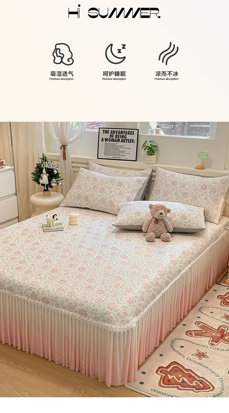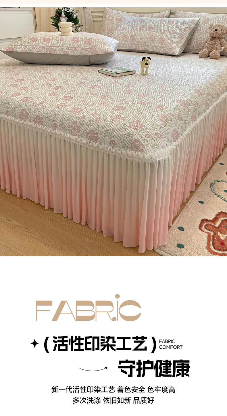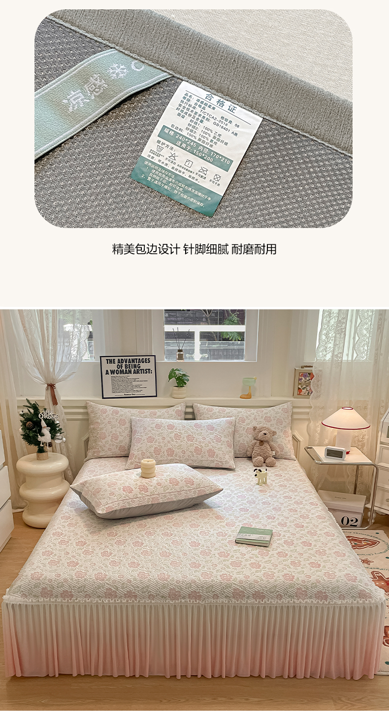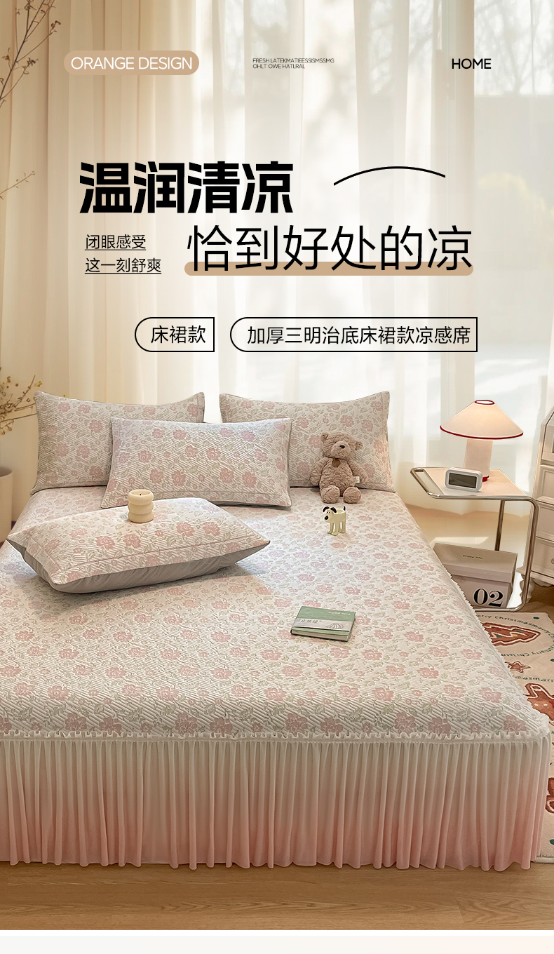 商品名称:雅居纺家纺 2026新款加厚三明治底床裙款凉感席凉席席子 梦幻-粉