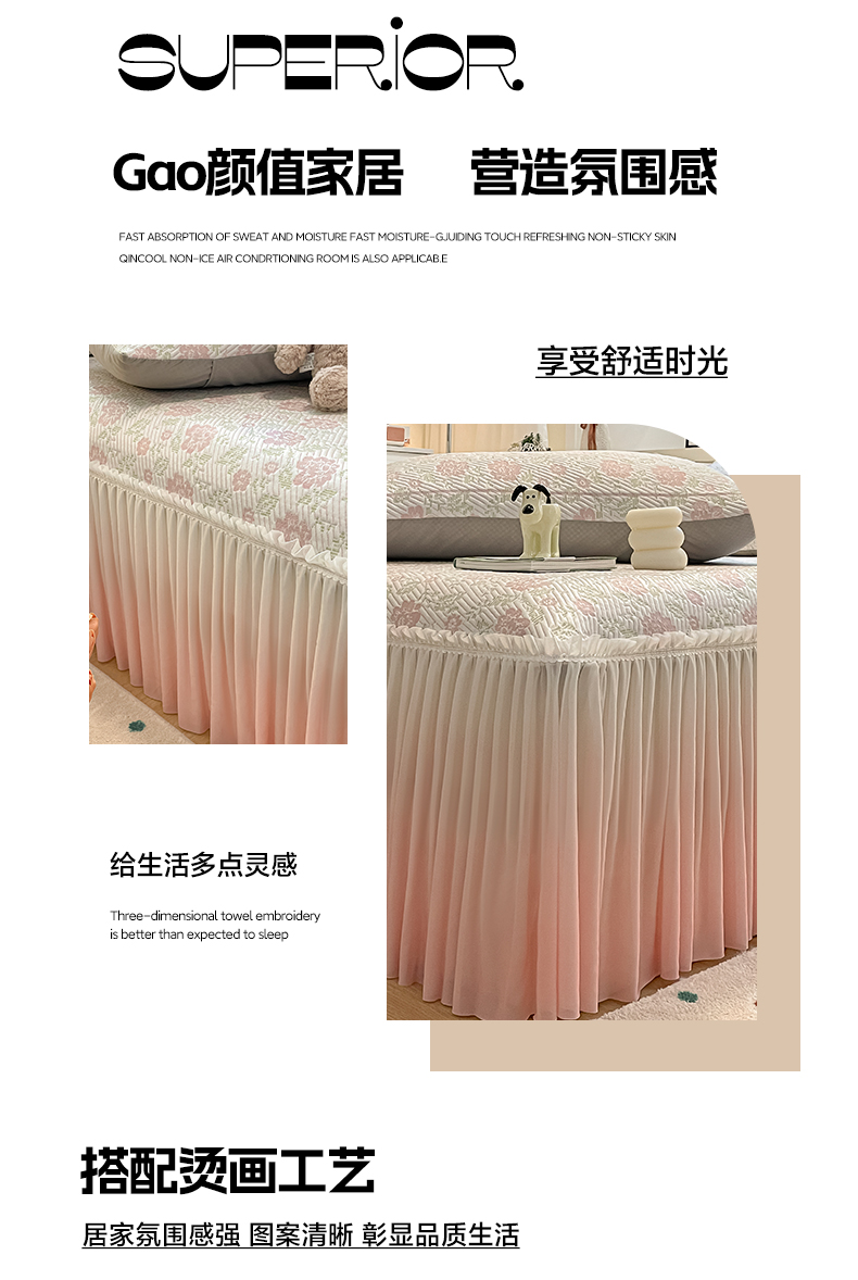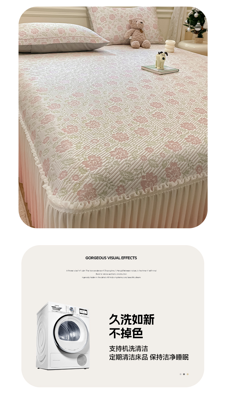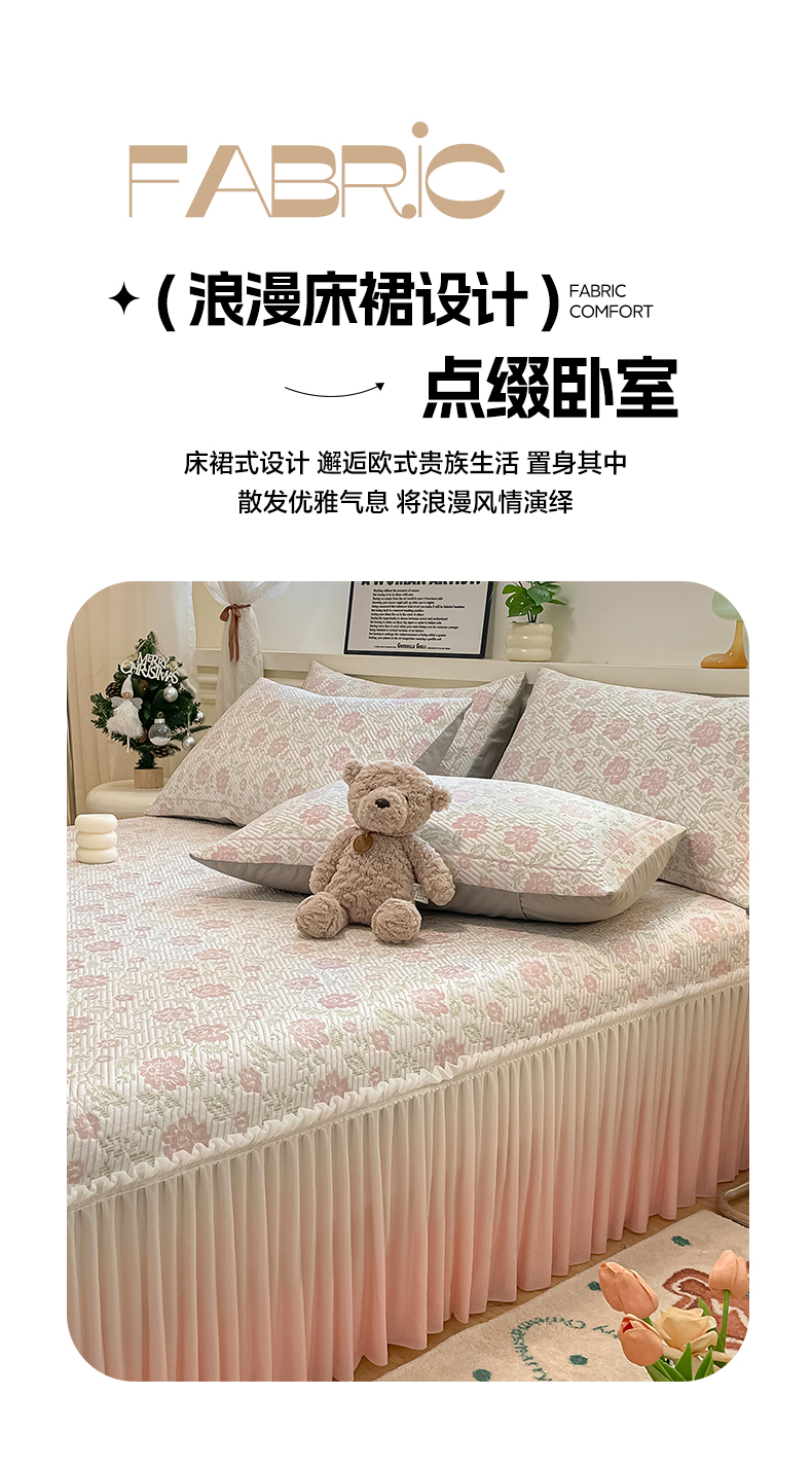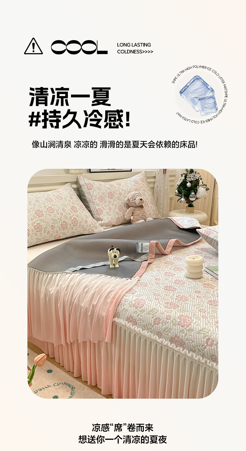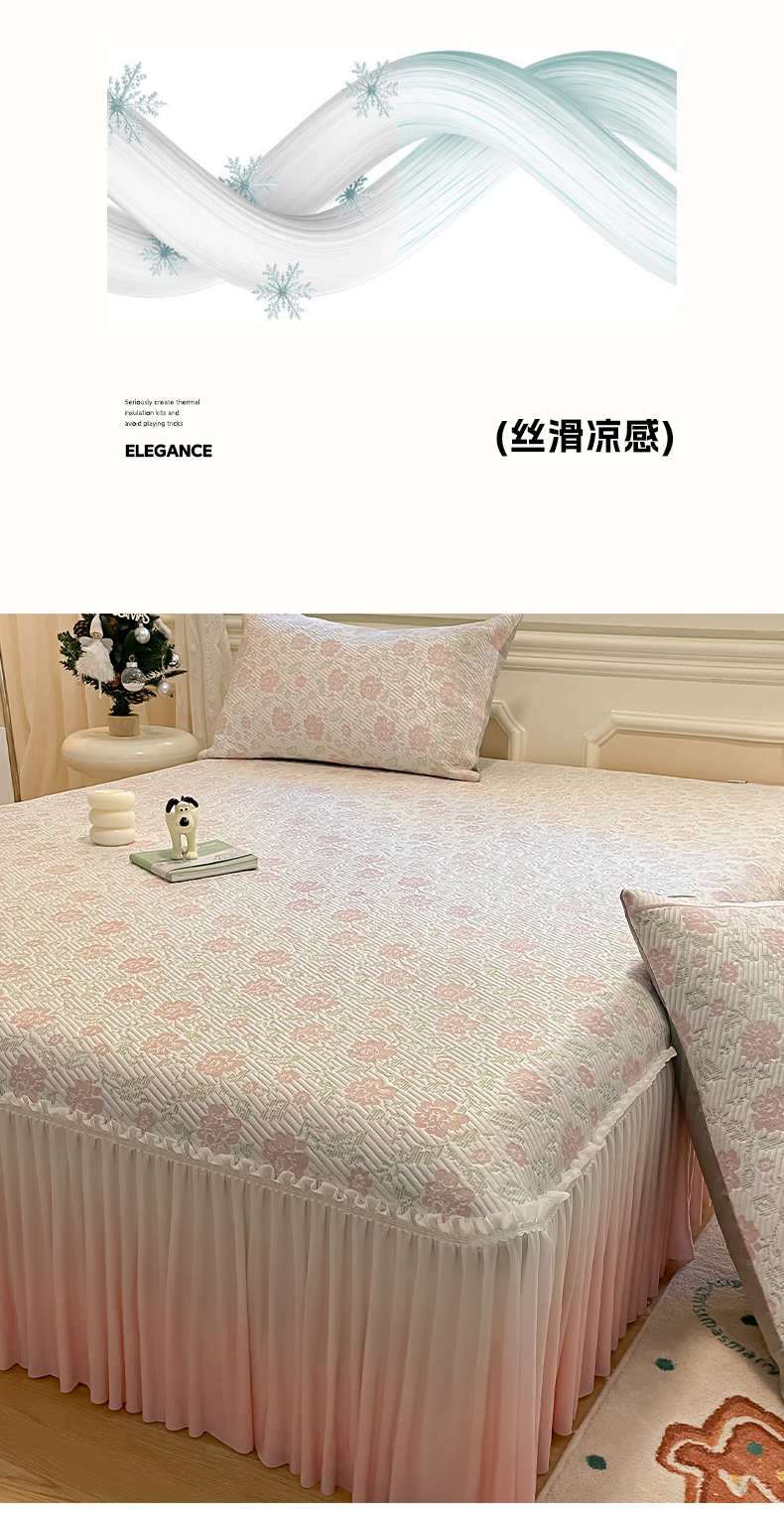 商品名称:雅居纺家纺 2026新款加厚三明治底床裙款凉感席凉席席子 梦幻-粉