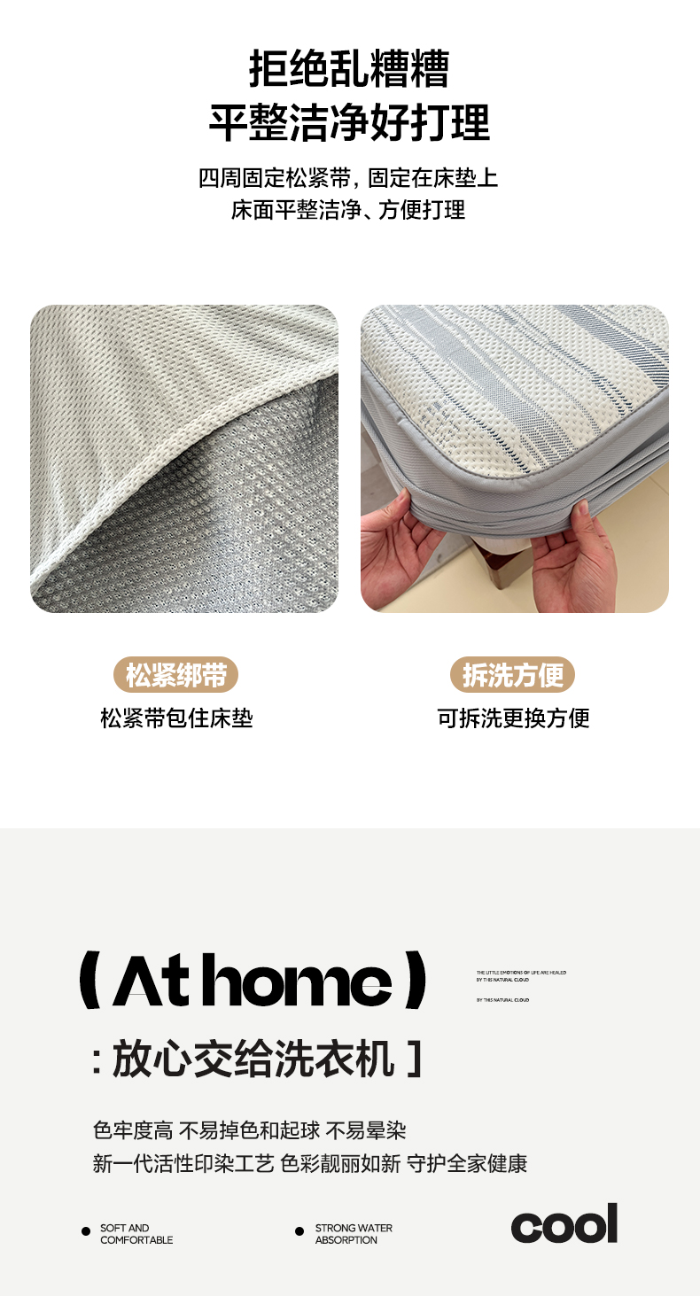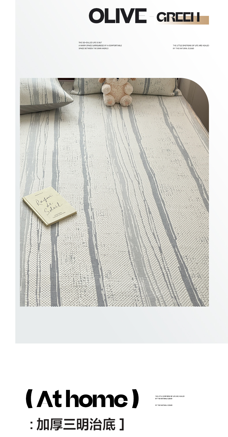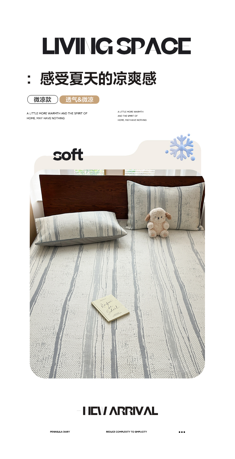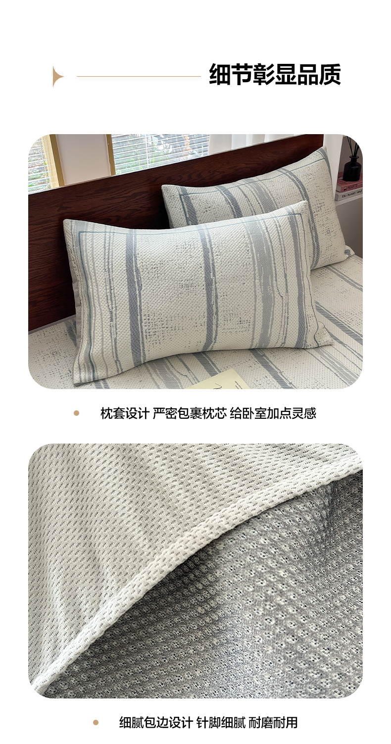 商品名称:雅居纺家纺 2026新款加厚三明治底凉感豆豆简约款凉感席床笠款凉席席子 条纹-蓝