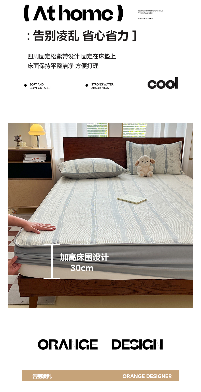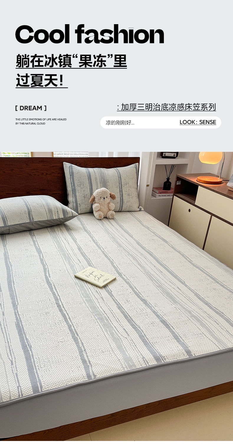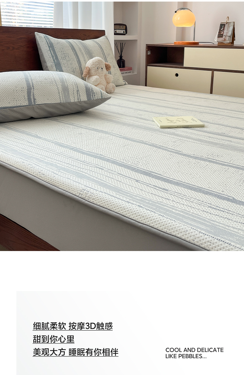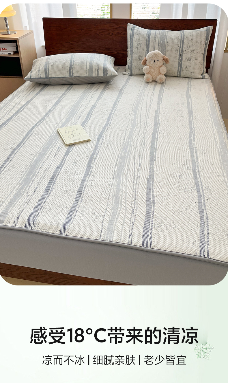 雅居纺家纺 2026新款加厚三明治底凉感豆豆简约款凉感席床笠款凉席席子 条纹-蓝
