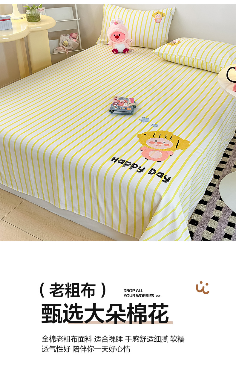 商品名称:雅居纺家纺 2026新款全棉绣花A类老粗布床单单件床单单品凉席席子 老粗布-小海狸-黄