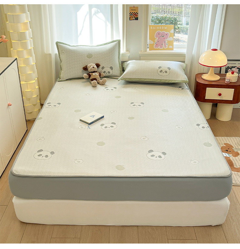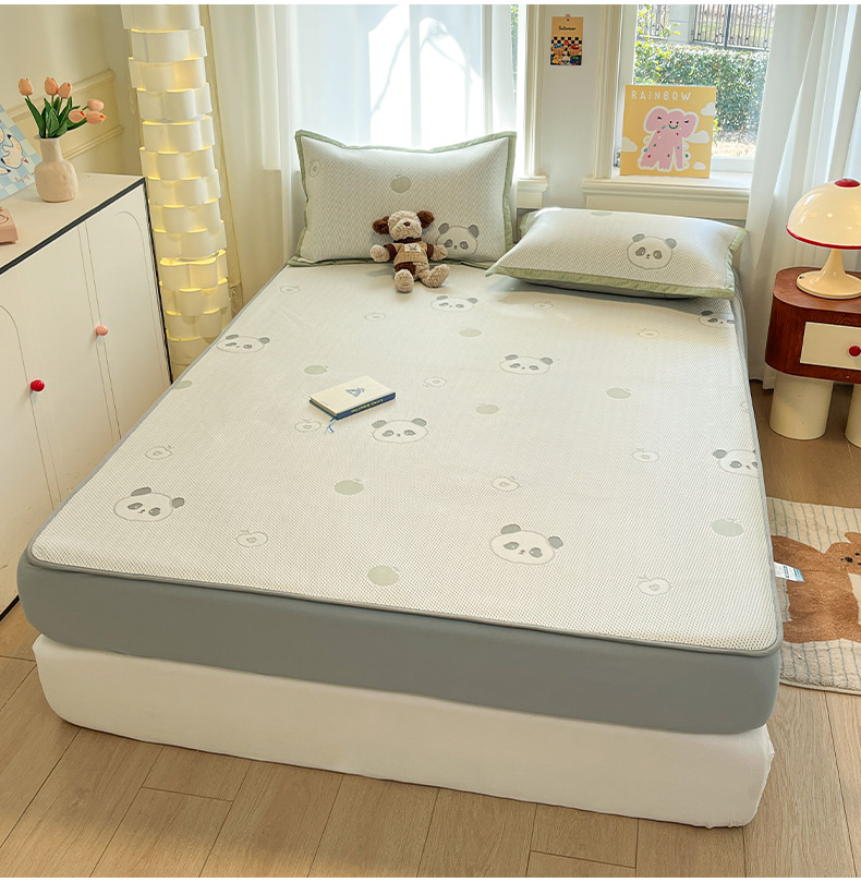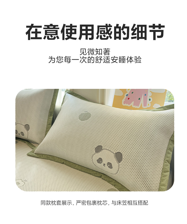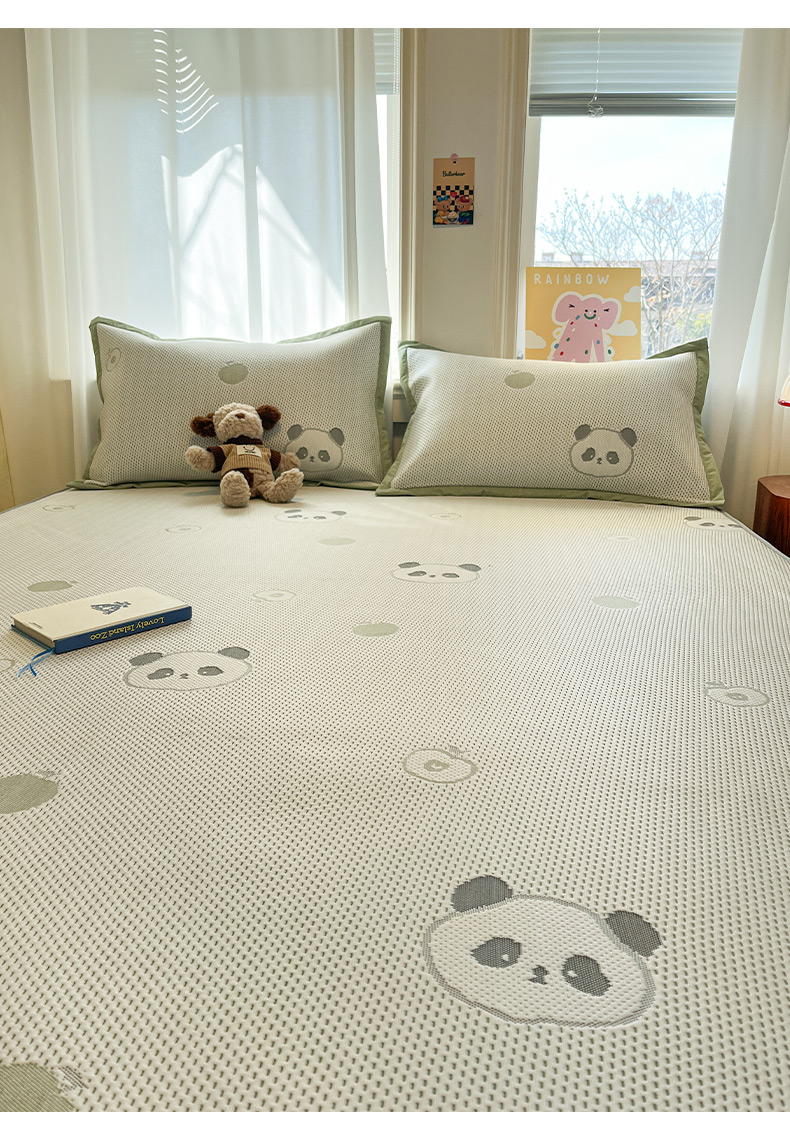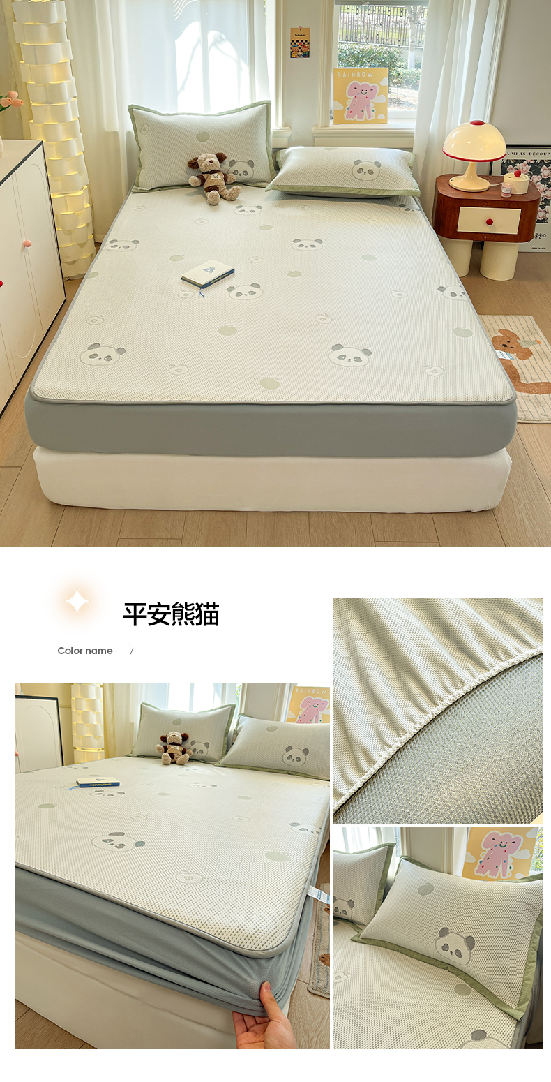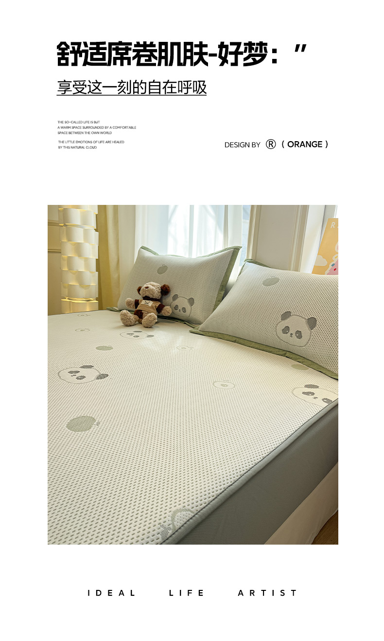 商品名称:雅居纺家纺 2026新款A类加厚三明治底提花小清新凉感席床笠款凉席席子 平安熊猫