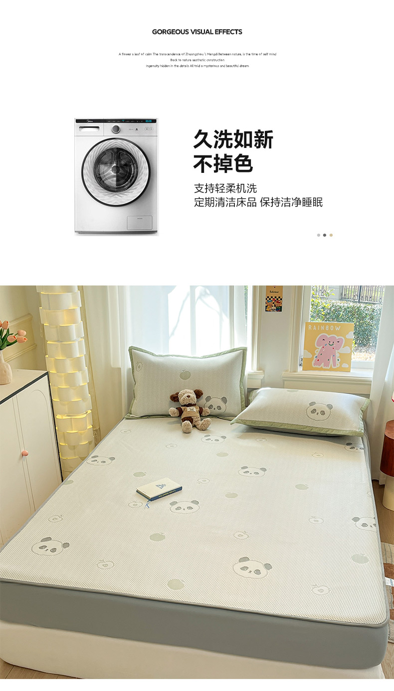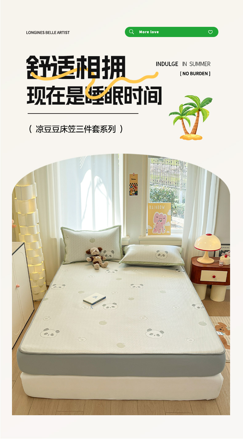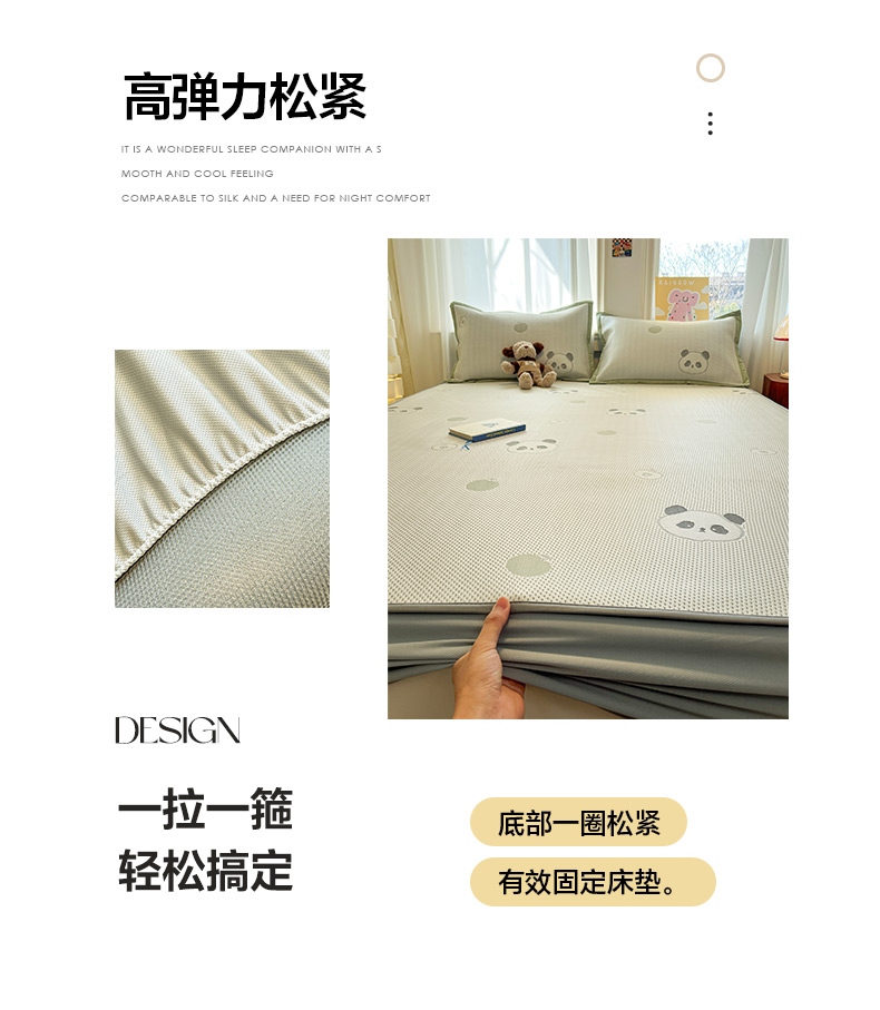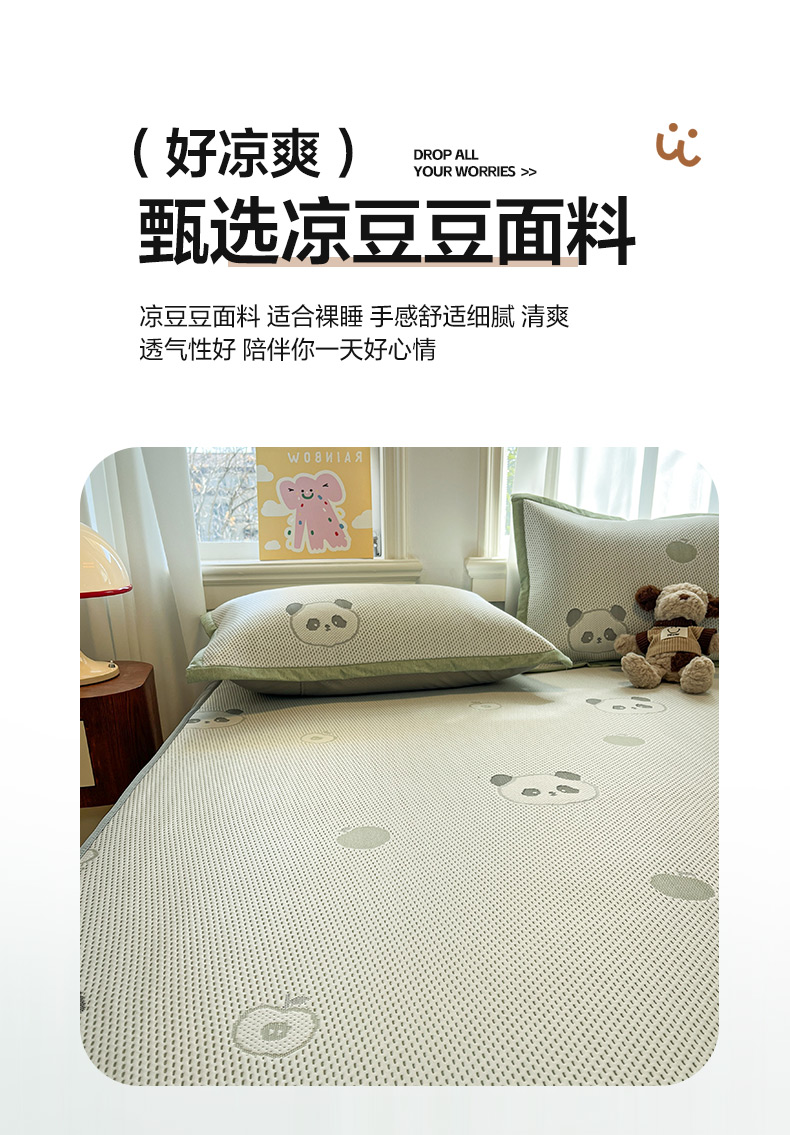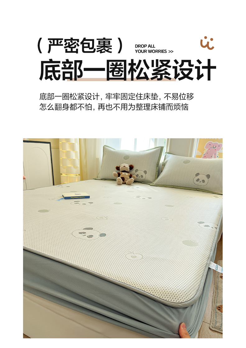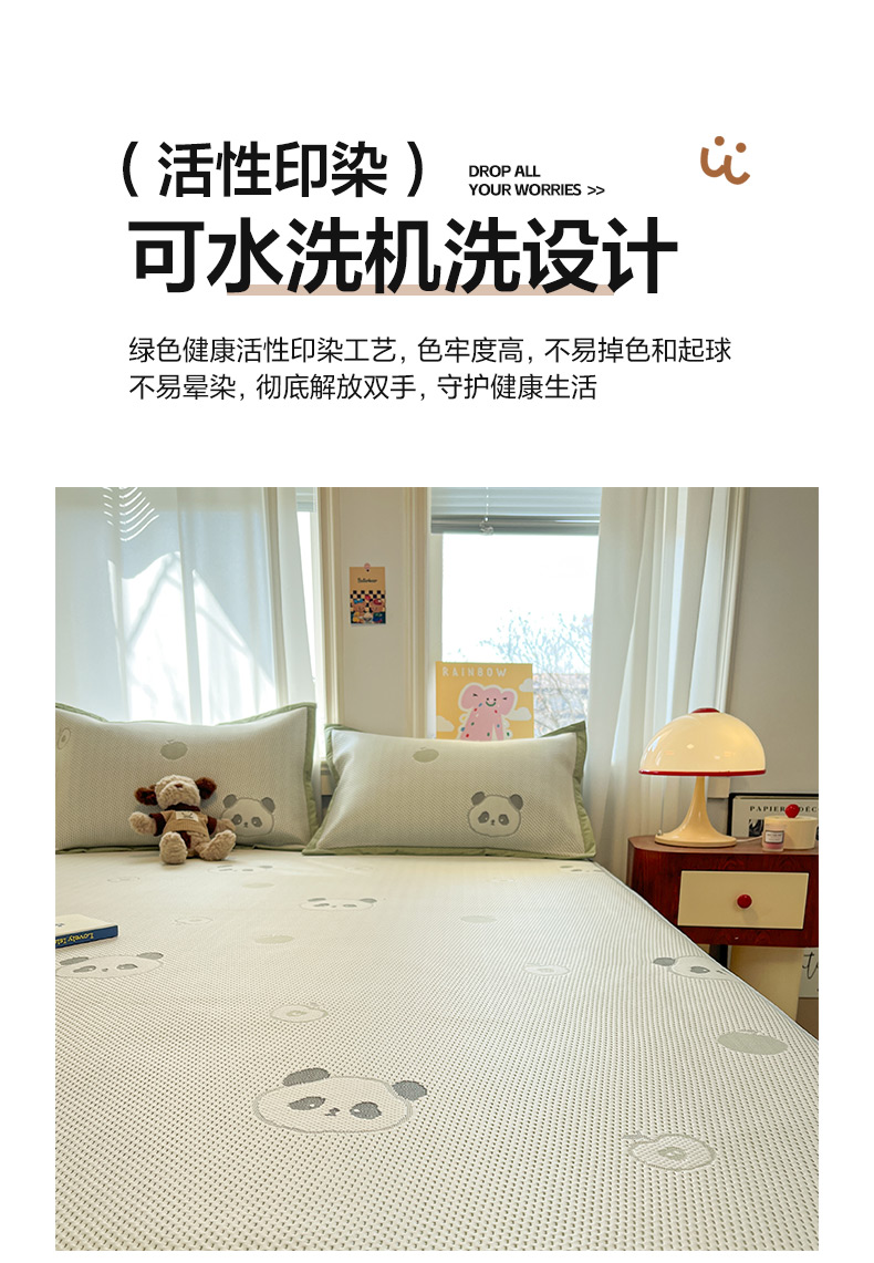 商品名称:雅居纺家纺 2026新款A类加厚三明治底提花小清新凉感席床笠款凉席席子 平安熊猫