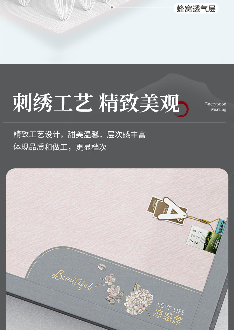 商品名称:(总)小牛席业 2026新款双PE高凉感-小斜纹美丽绣球冰丝席席子凉席