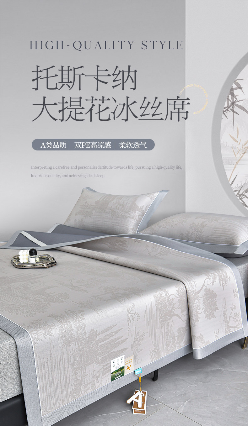 商品名称:(总)小牛席业 2026新款【实拍风格】双PE高凉感-托斯卡纳凉感大提花冰丝席席子凉席