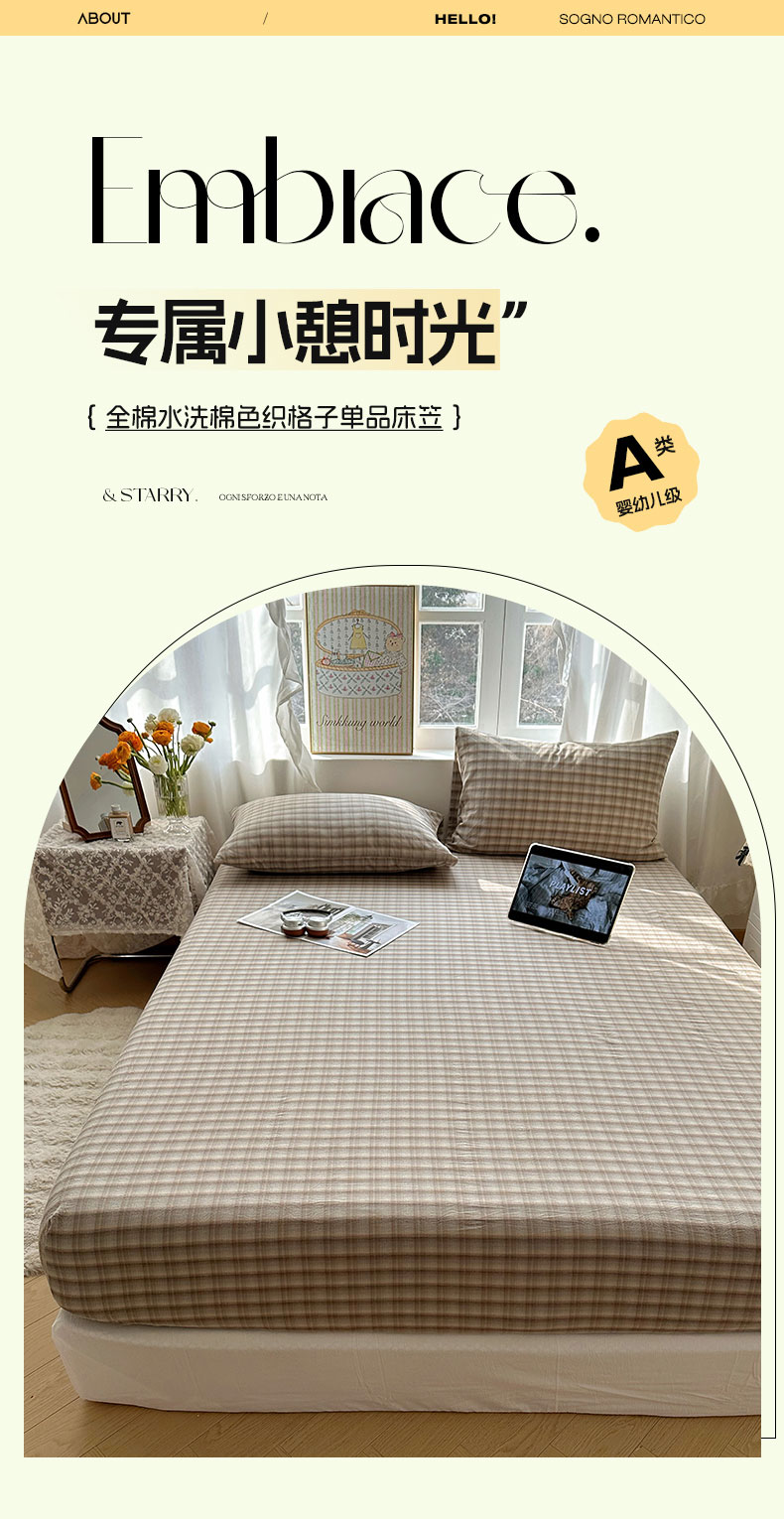 商品名称:六巷胡同 2026新款A类全棉纯棉水洗棉色织格子单品床笠 床笠单件 逐风-灰格
