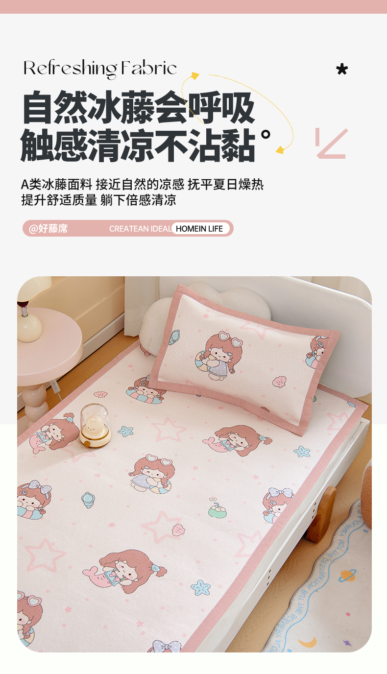 当前位置: 91家纺网 > 商品网购 > 床上用品 > 凉席 > 凉席套件 > 鱼宝2026新款儿童冰藤席冰丝凉席软席 美人鱼