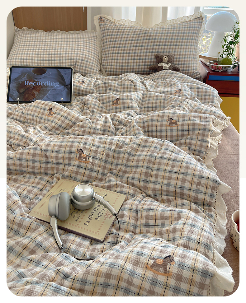 (总)宝士康家纺 2026新款10A抗菌全棉花边双拼云朵棉单夏被夏被四件套,双拼灰格-蝴蝶花卉,双拼灰格-碎花小狗,双拼灰格-碎花小樱桃,双拼咖格-花田小熊,双拼咖格-玫瑰小熊