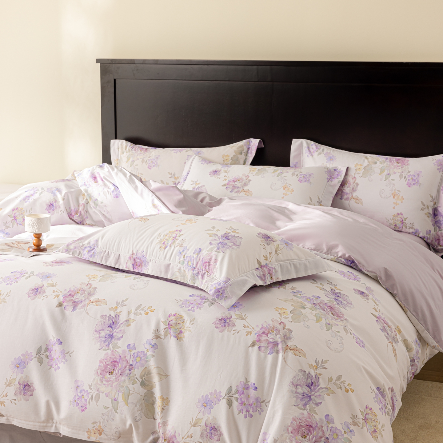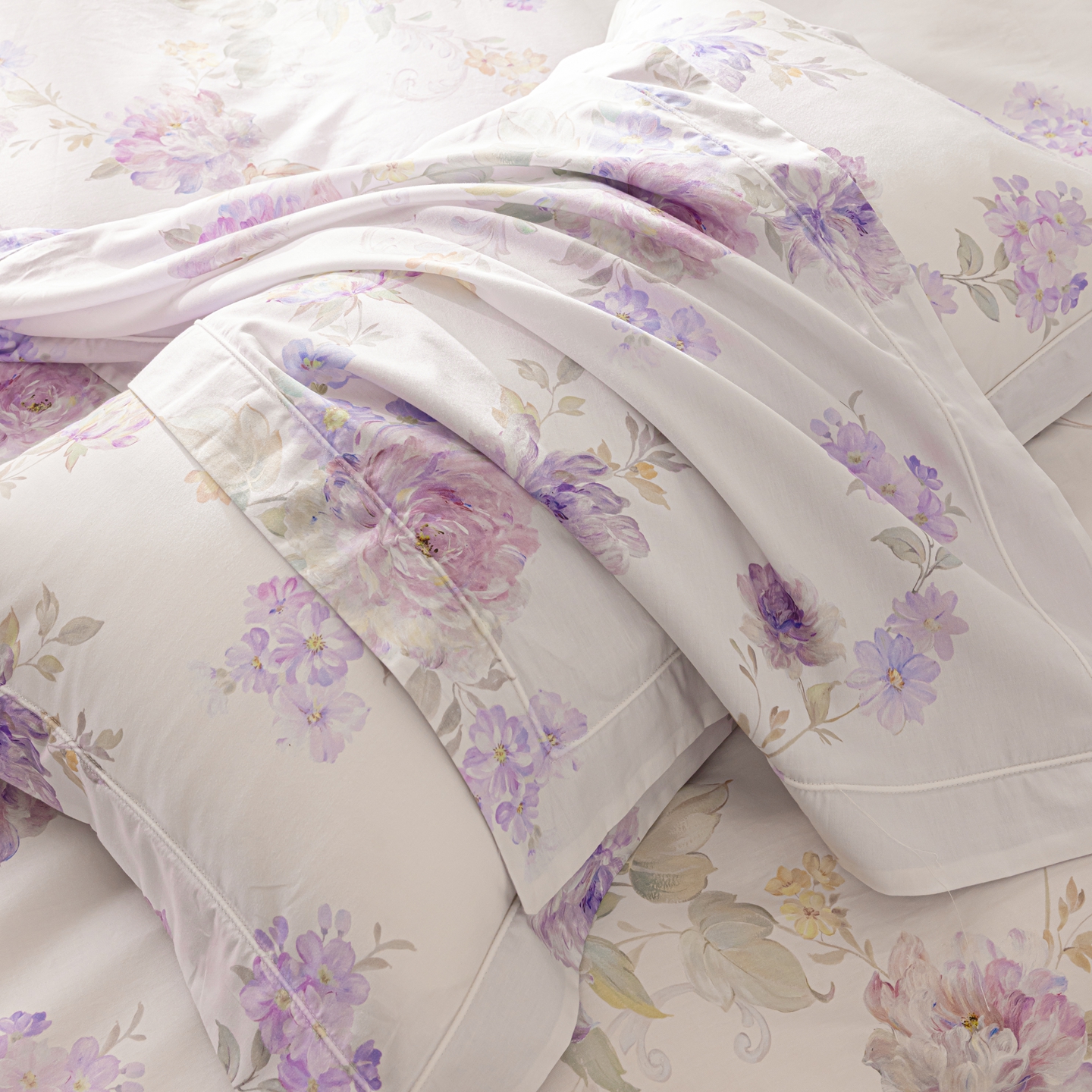 莱豫家纺 2026新款50s阿克苏长绒棉数码印花四件套 嘉卉紫