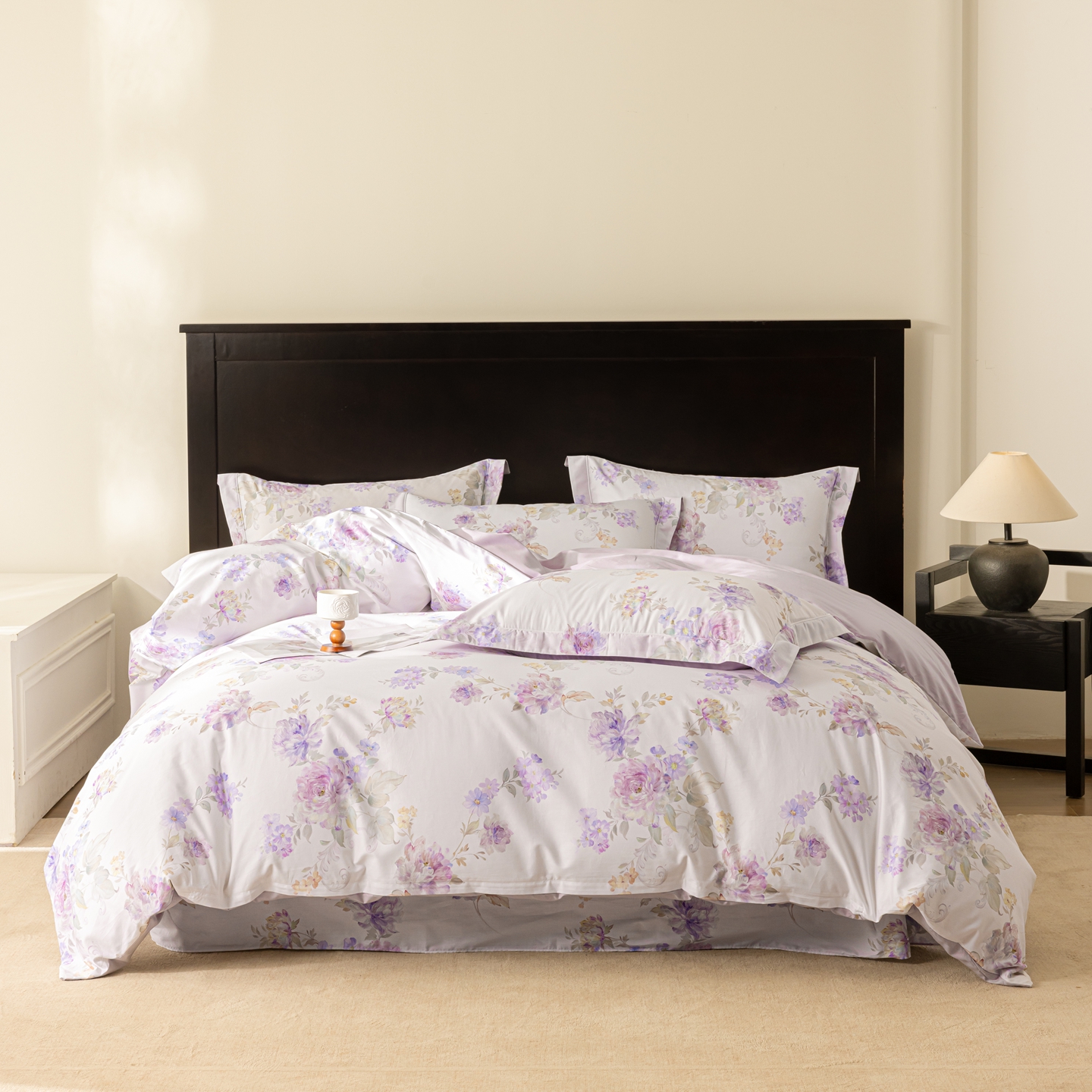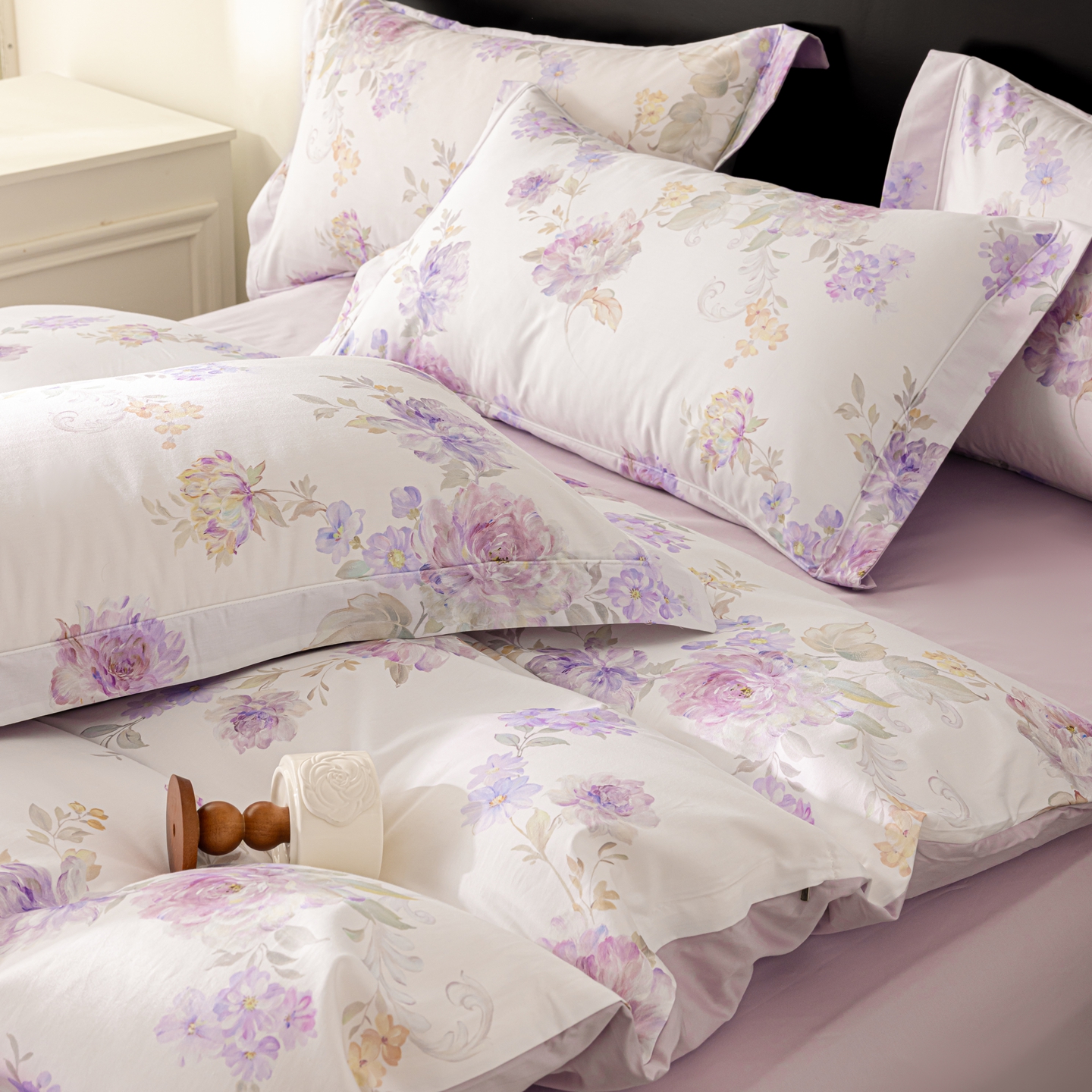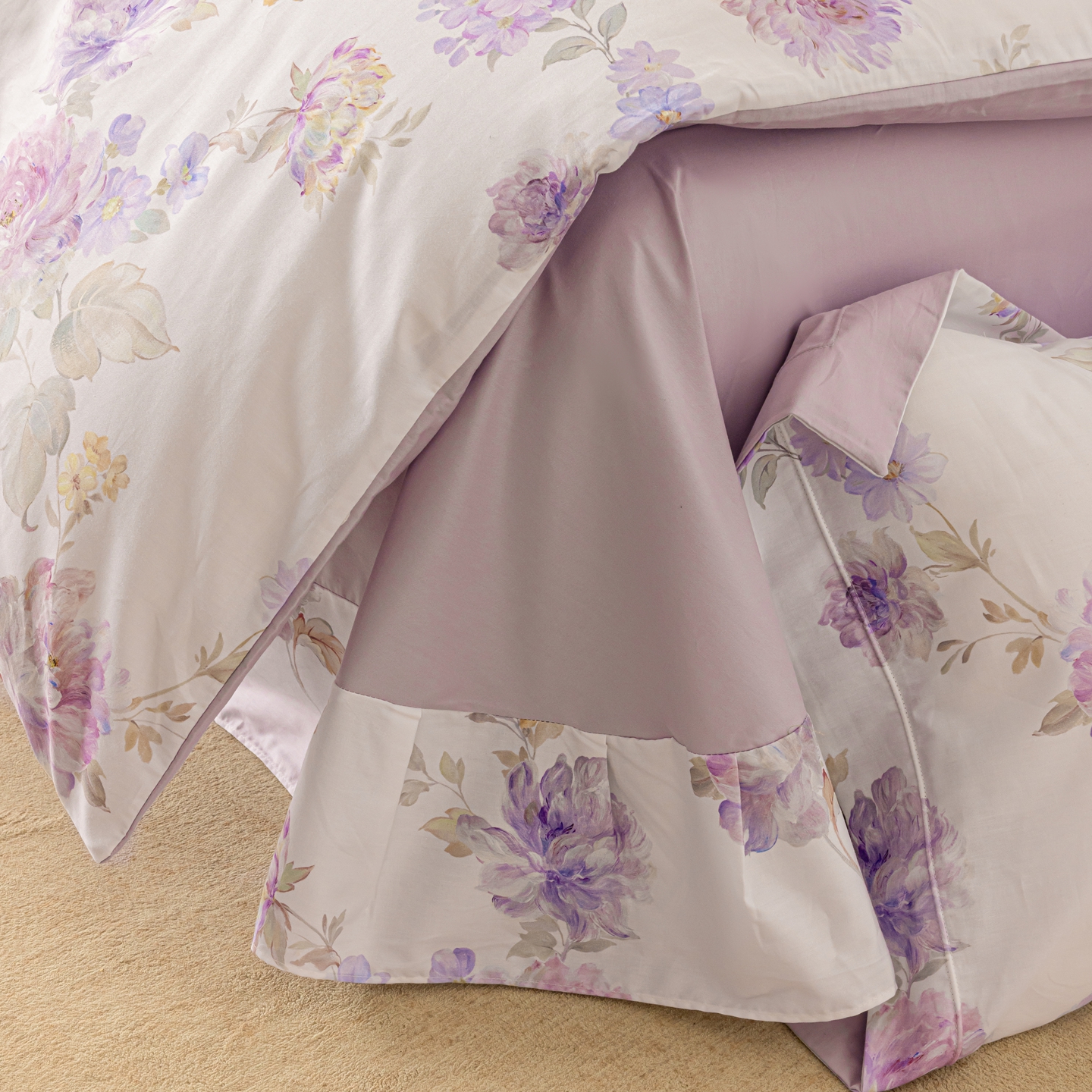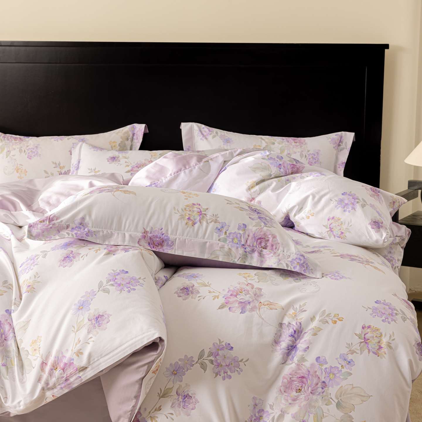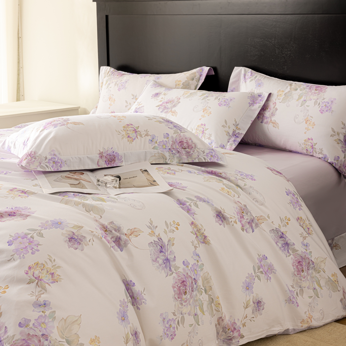 商品名称:莱豫家纺 2026新款50s阿克苏长绒棉数码印花四件套 嘉卉紫