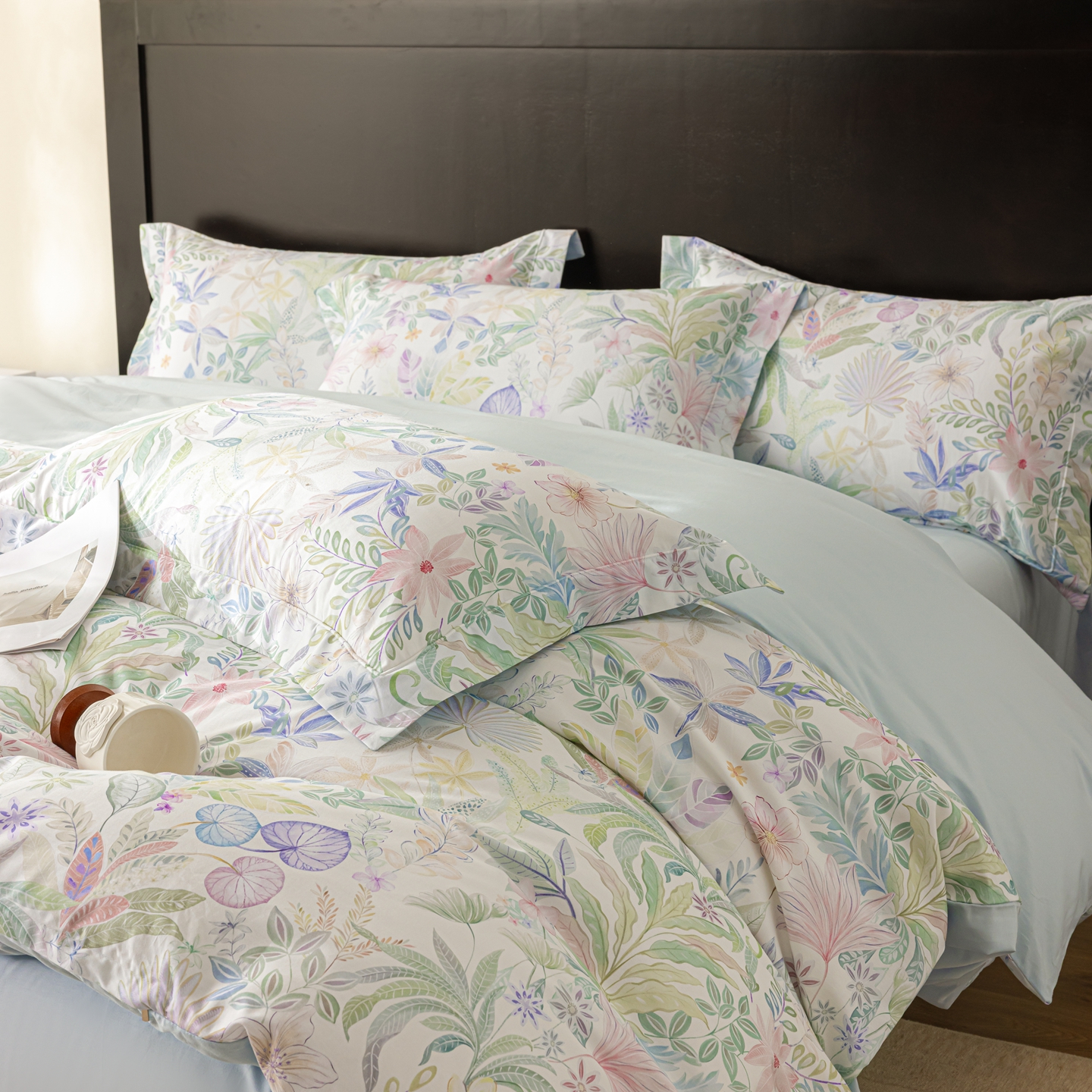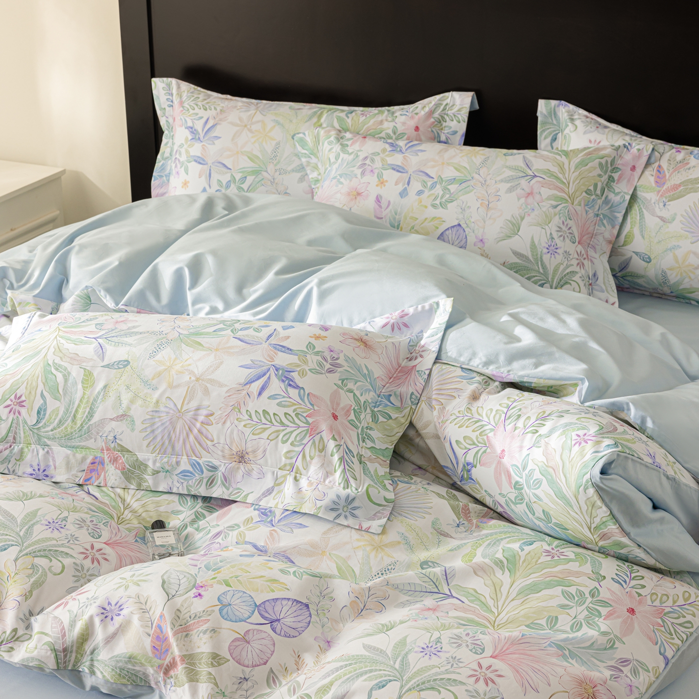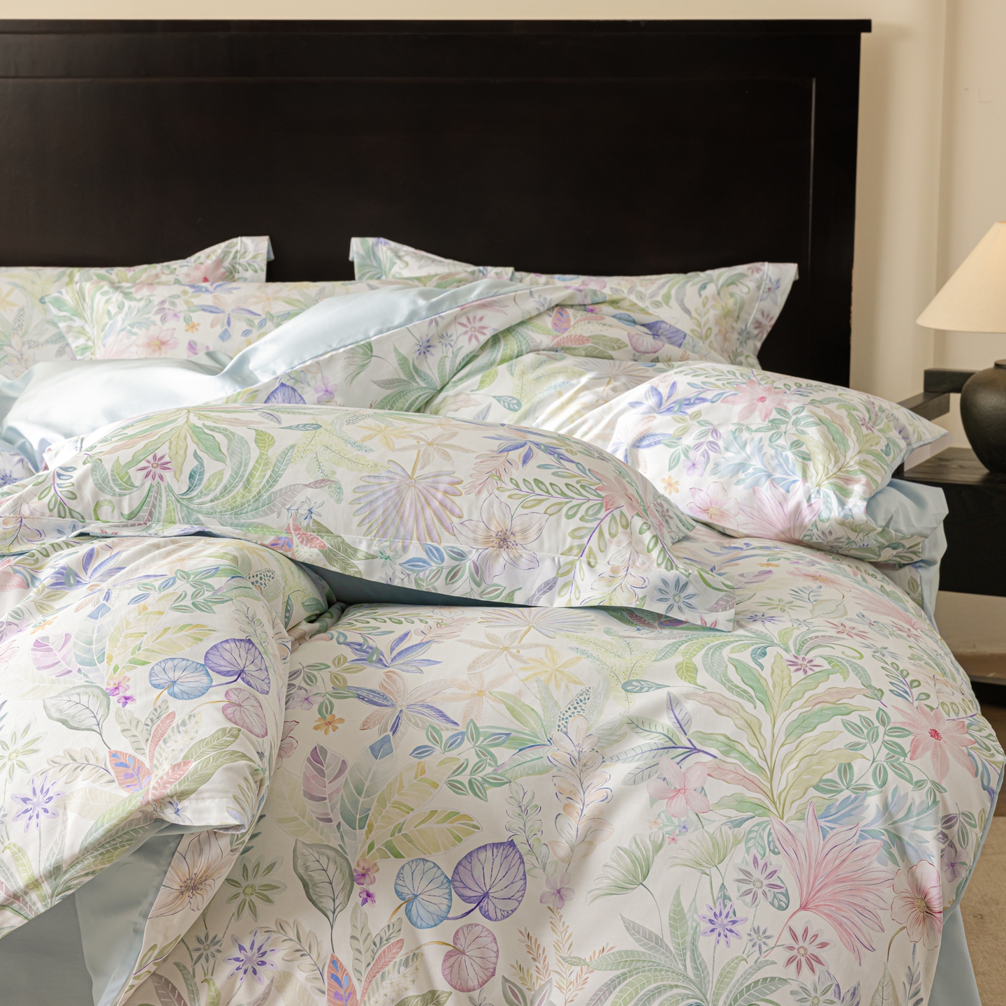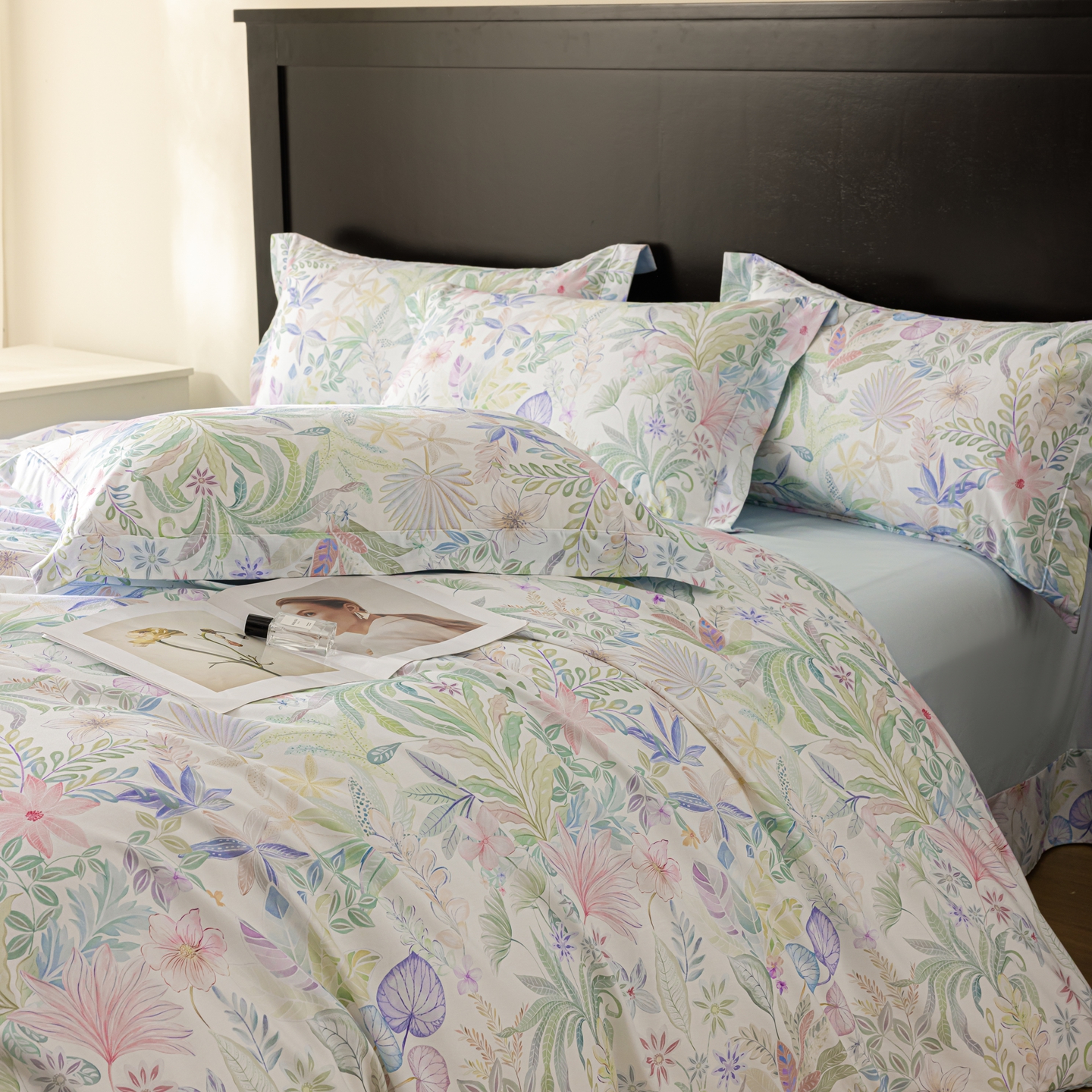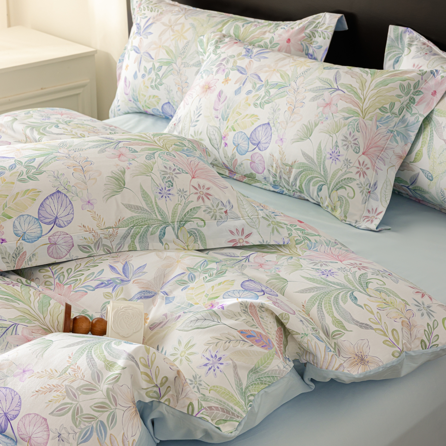 莱豫家纺 2026新款50s阿克苏长绒棉数码印花四件套 晚柠绿