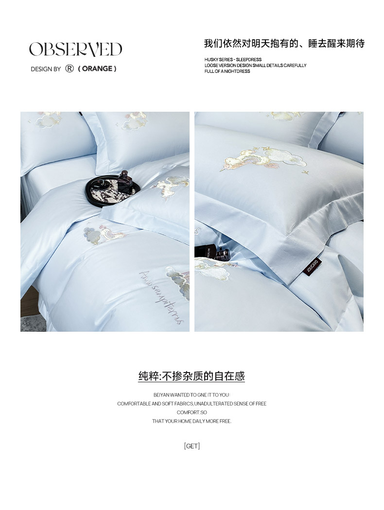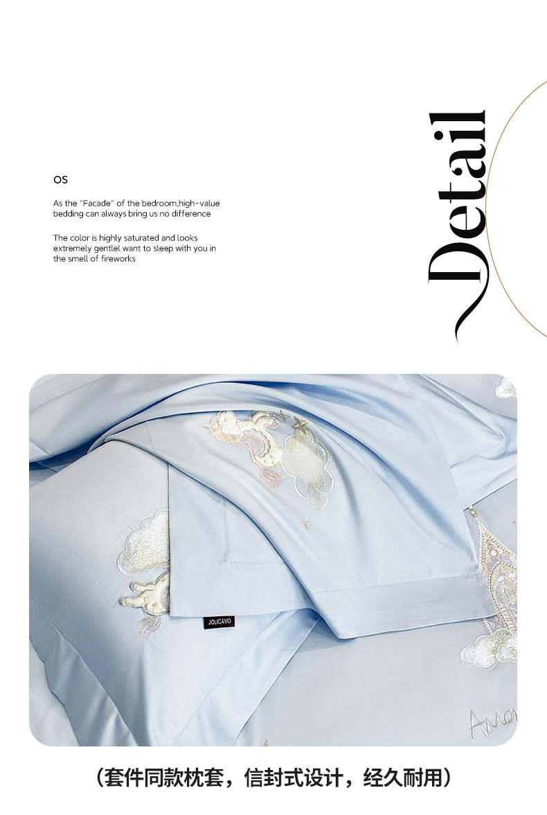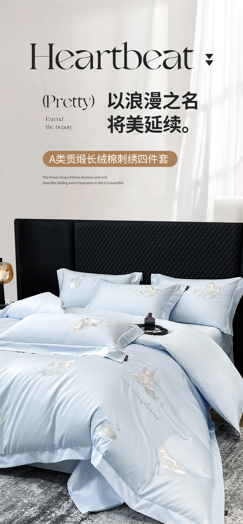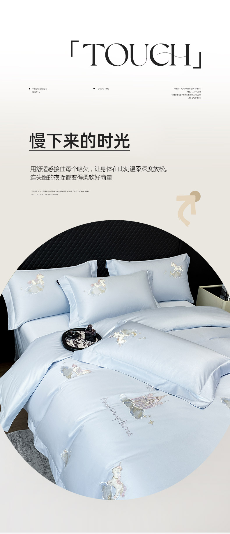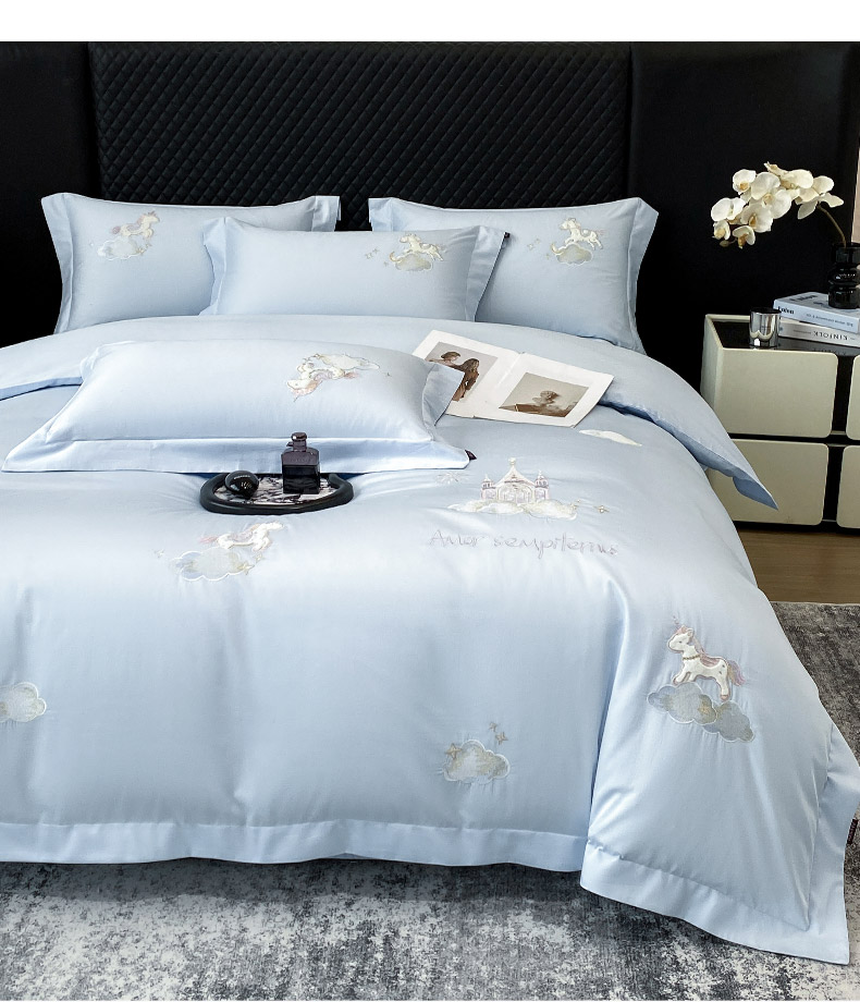 当前位置: 91家纺网 > 商品网购 > 床品套件 > 四件套 > 长绒棉四件套 > 春夏新品A类长绒棉纯棉四件套100全棉重工刺绣被套床单床笠纯色高端轻奢床上用品 城堡小马-慕蓝