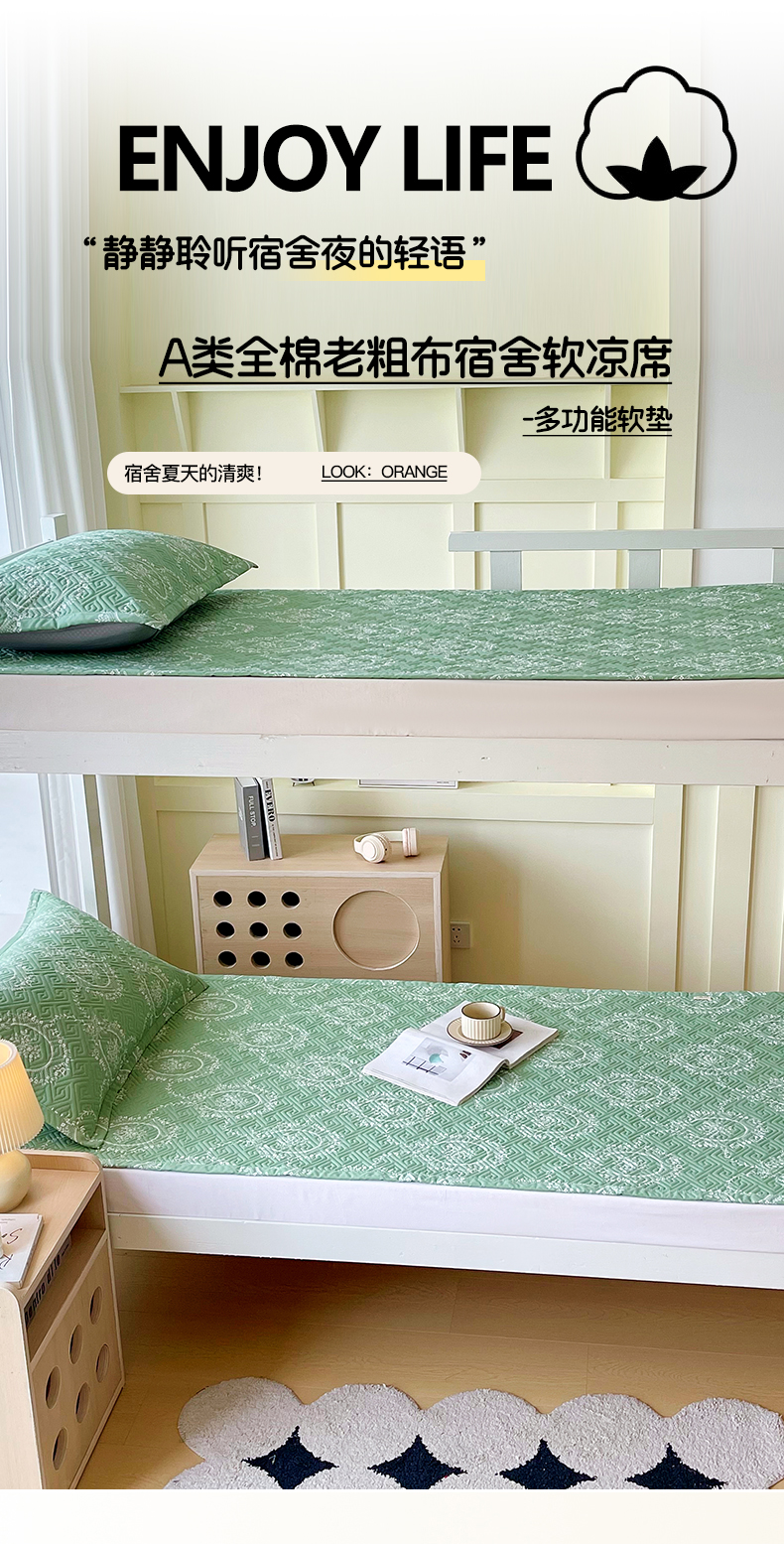 当前位置: 91家纺网 > 商品网购 > 床上用品 > 凉席 > 其他凉席 > 金鑫汇家纺 2026春夏新款学生床新花型老粗布床盖夹棉软凉席席子可以机洗 学生床-芳华