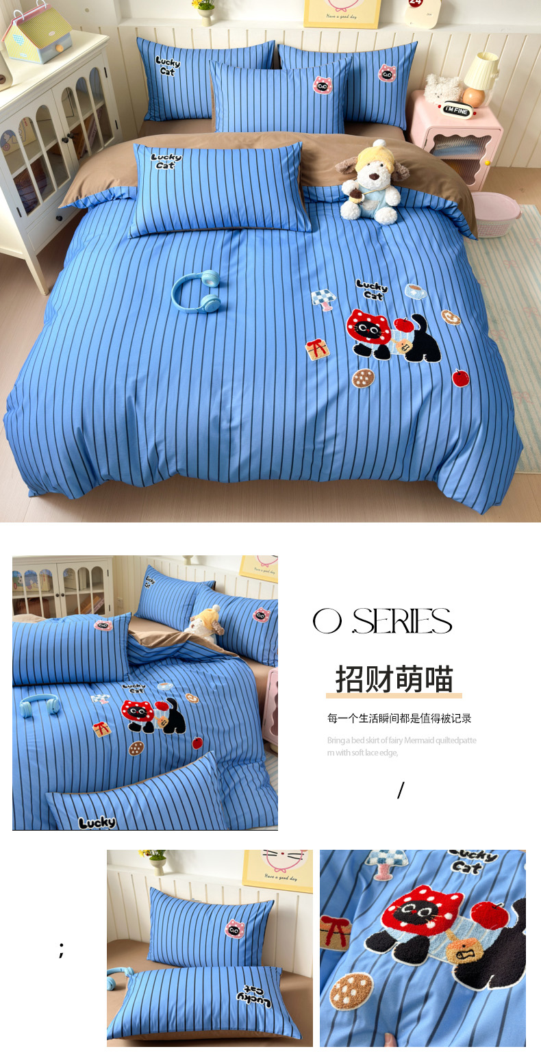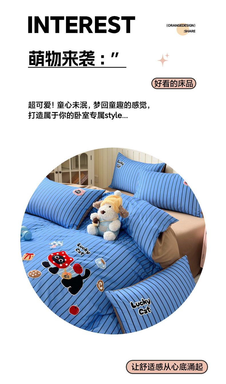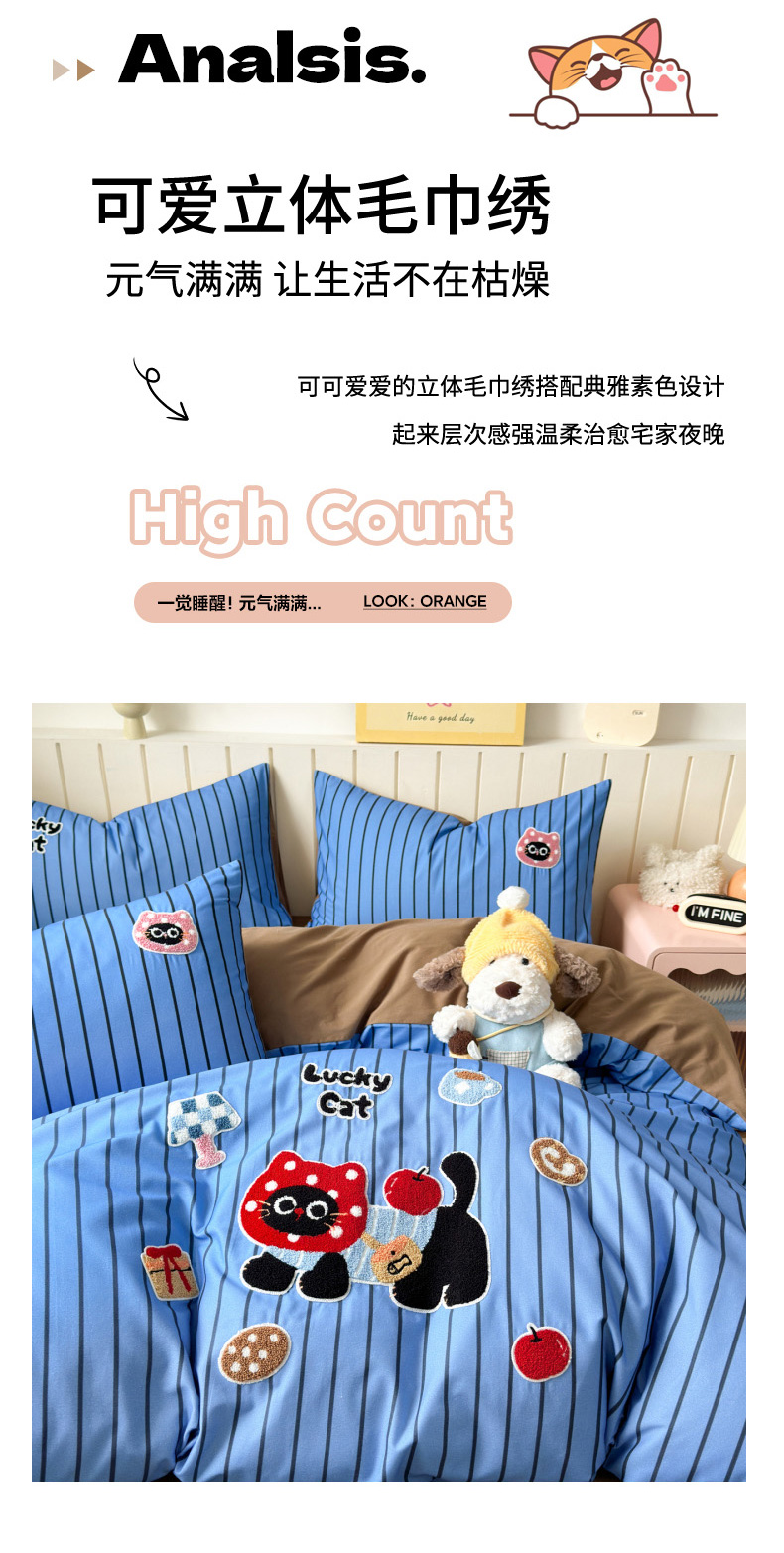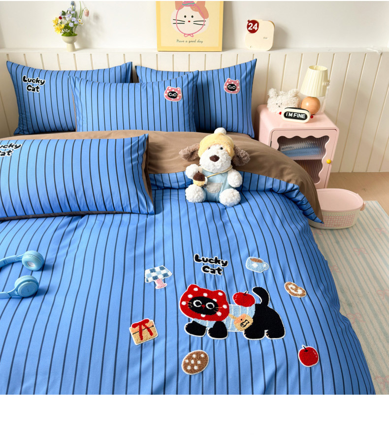 当前位置: 91家纺网 > 商品网购 > 床品套件 > 四件套 > 全棉普通四件套 > 如意朵 2026新款超柔高密全棉小清新绣花四件套(专版花型) 招财萌喵