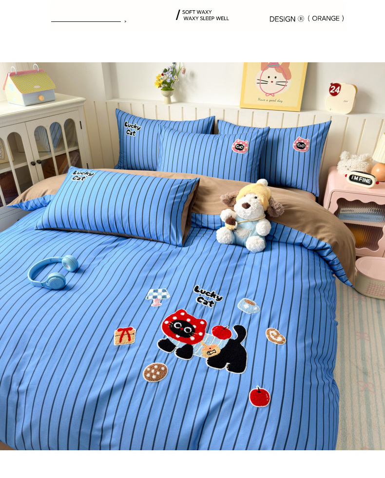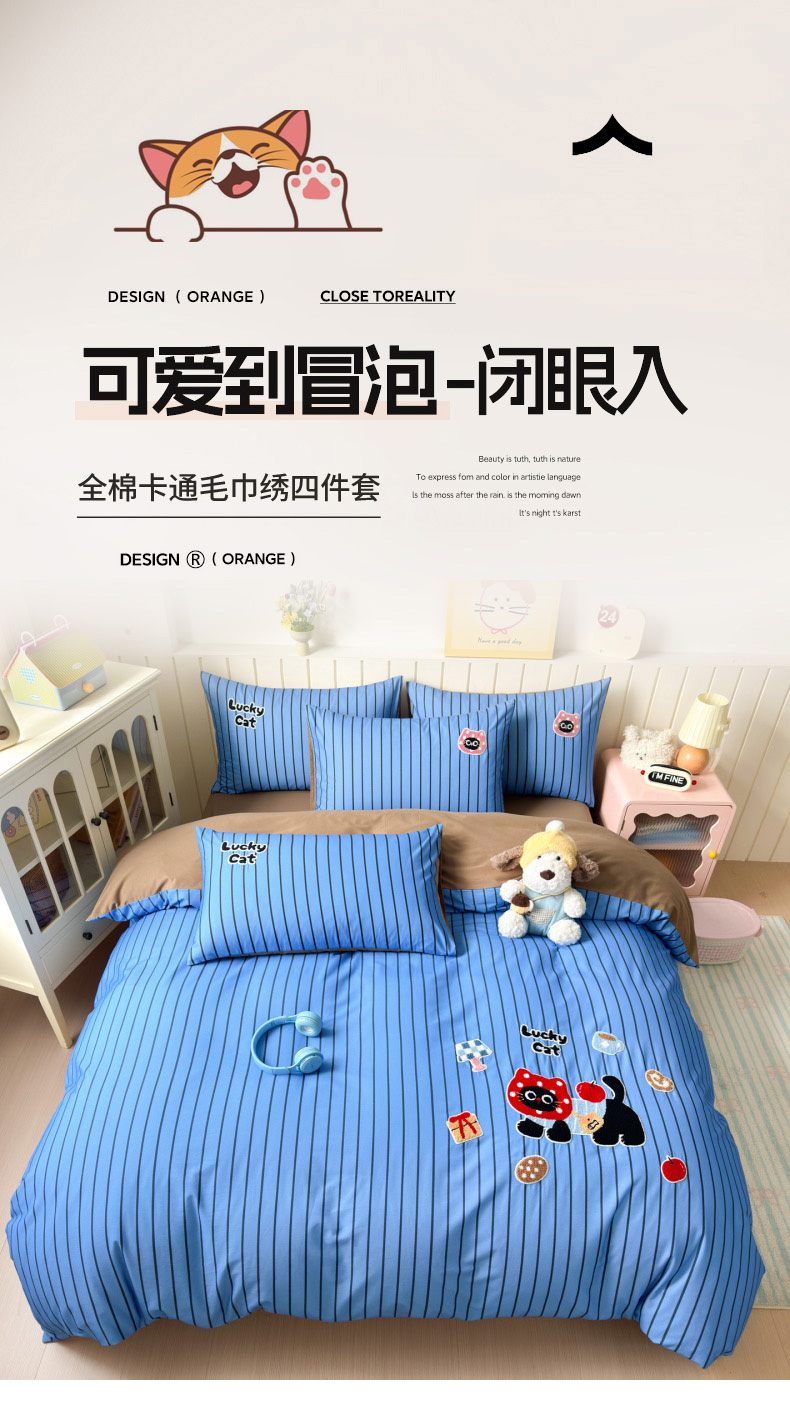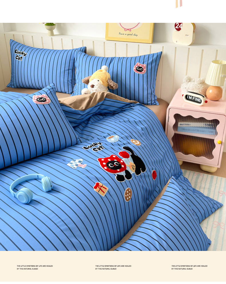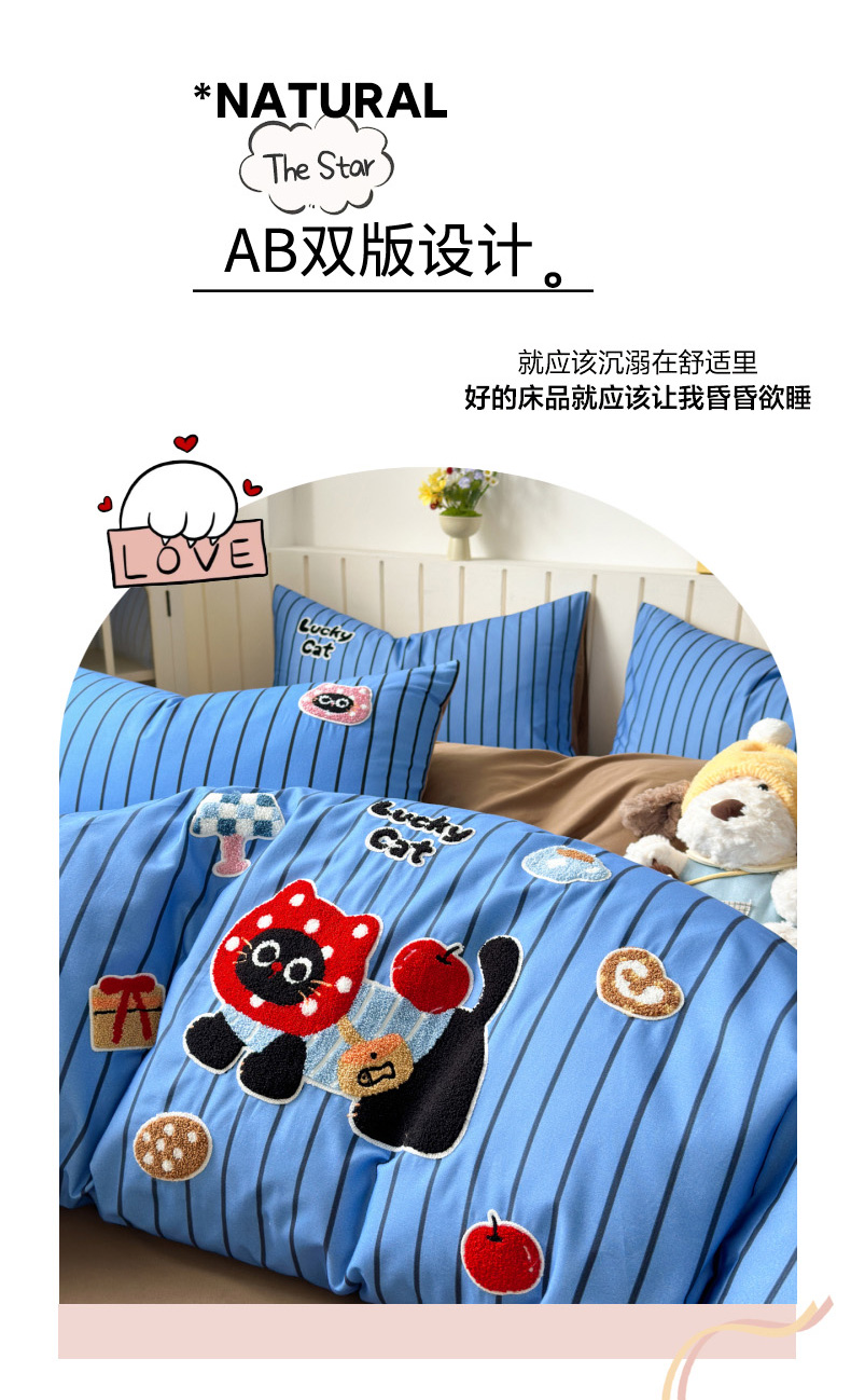 当前位置: 91家纺网 > 商品网购 > 床品套件 > 四件套 > 全棉普通四件套 > 如意朵 2026新款超柔高密全棉小清新绣花四件套(专版花型) 招财萌喵