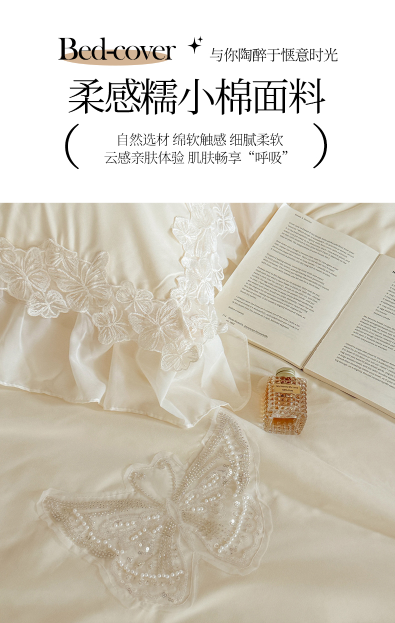 (总)吾欢心 2025新款糯小棉立体蝴蝶花边四件套-蝶恋花系列,蝶恋花白,蝶恋花粉,蝶恋花黄,蝶恋花咖,蝶恋花蓝,蝶恋花绿,蝶恋花紫