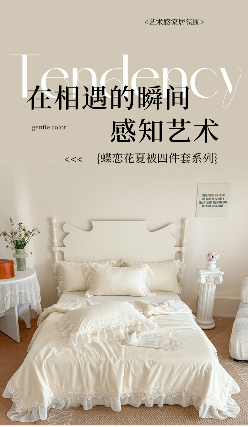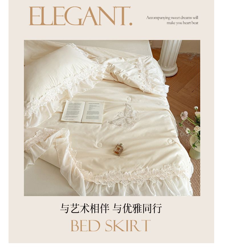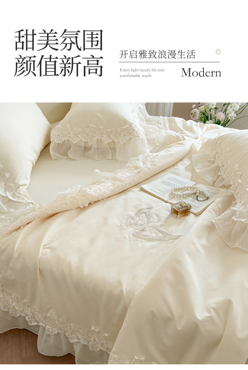 (总)吾欢心 2026新款A类法式花边爱丽莎床盖款夏被四件套,爱丽莎粉,爱丽莎白,爱丽莎黄,爱丽莎蓝,爱丽莎绿,爱丽莎紫