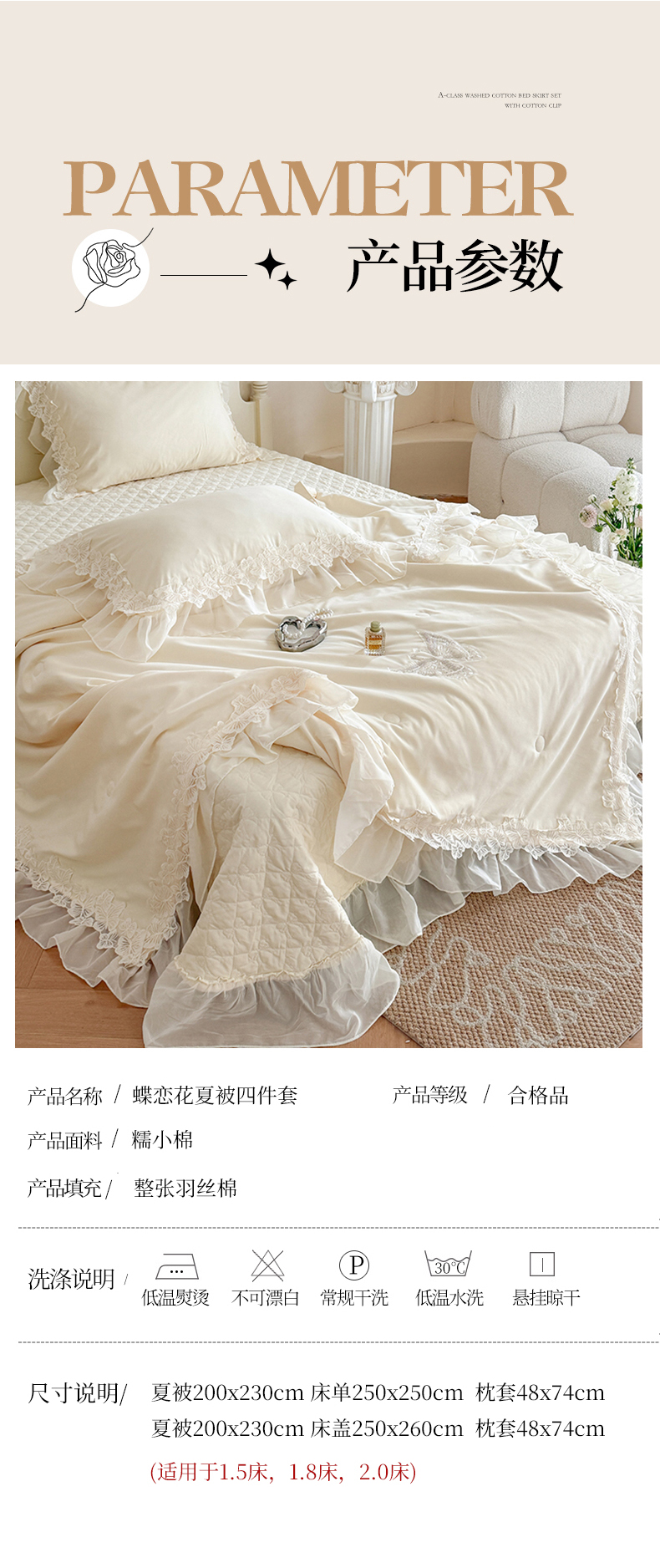 (总)吾欢心 2026新款糯小棉蝶恋花床盖款夏被四件套,粉,白,黄,咖,蓝,绿,紫