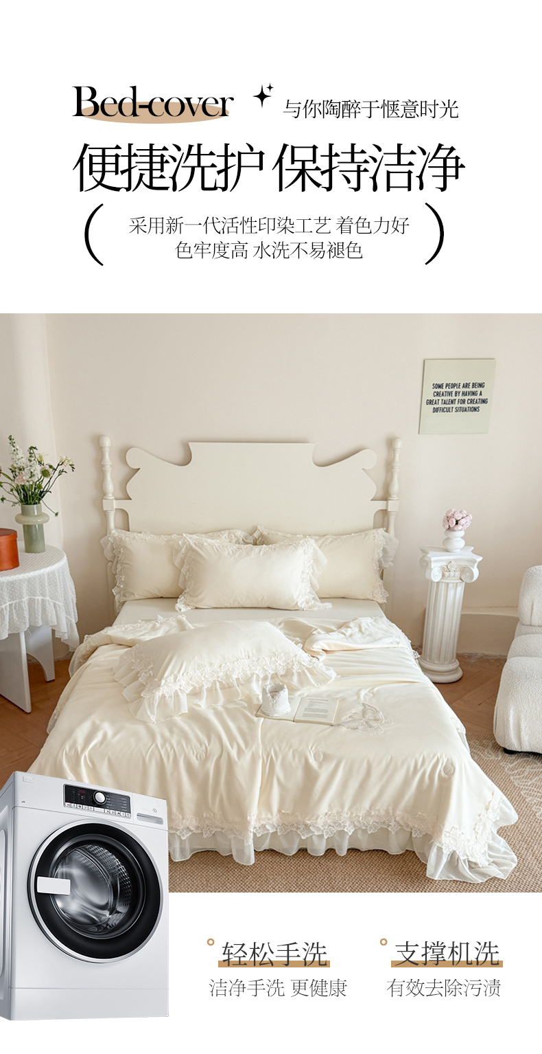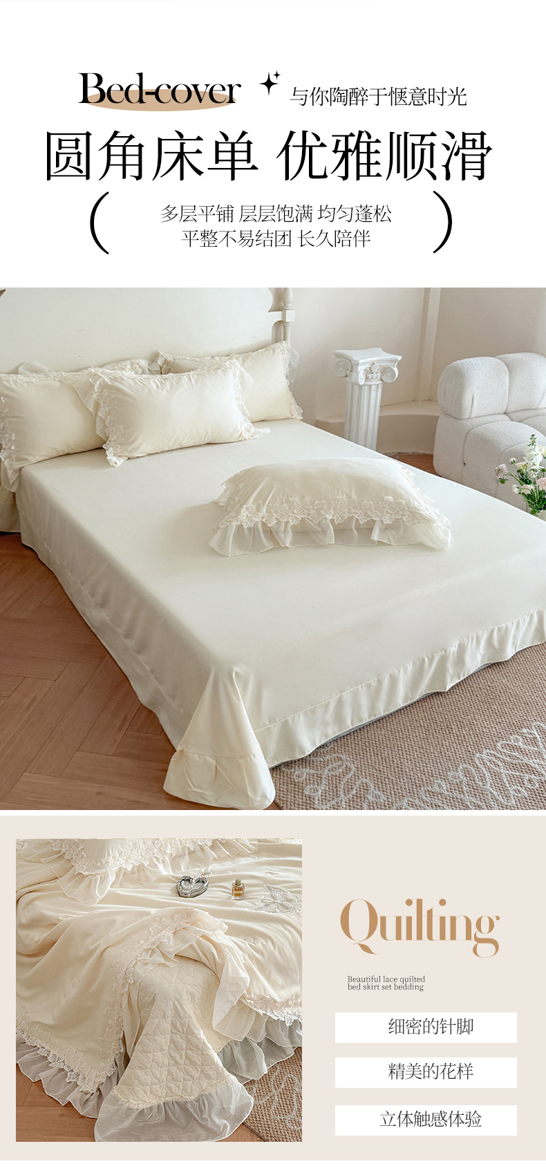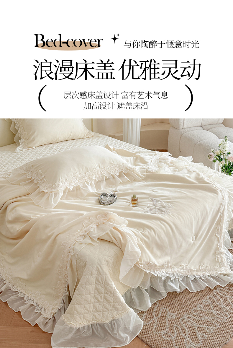 (总)吾欢心 2025新款公主风雪纺边四季通用夹棉床盖,床盖白,床盖粉,床盖黄,床盖咖,床盖绿,床盖抹茶绿,床盖紫