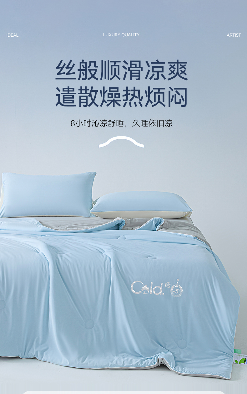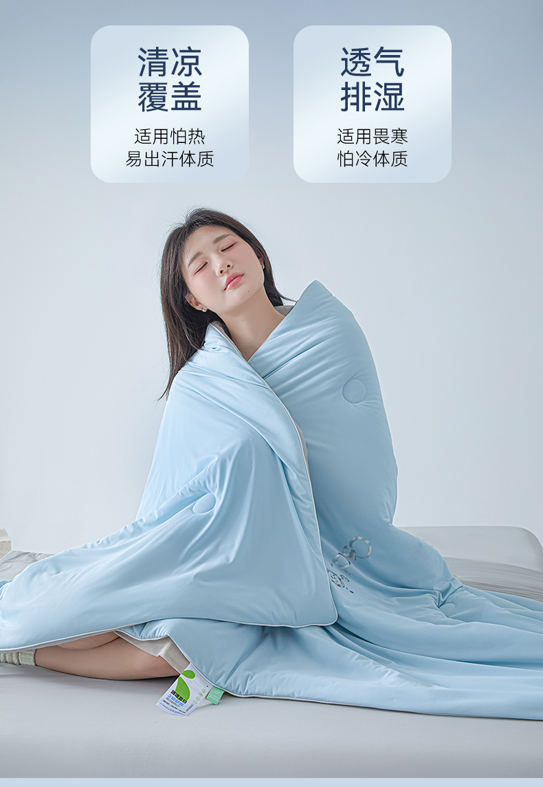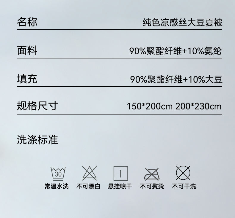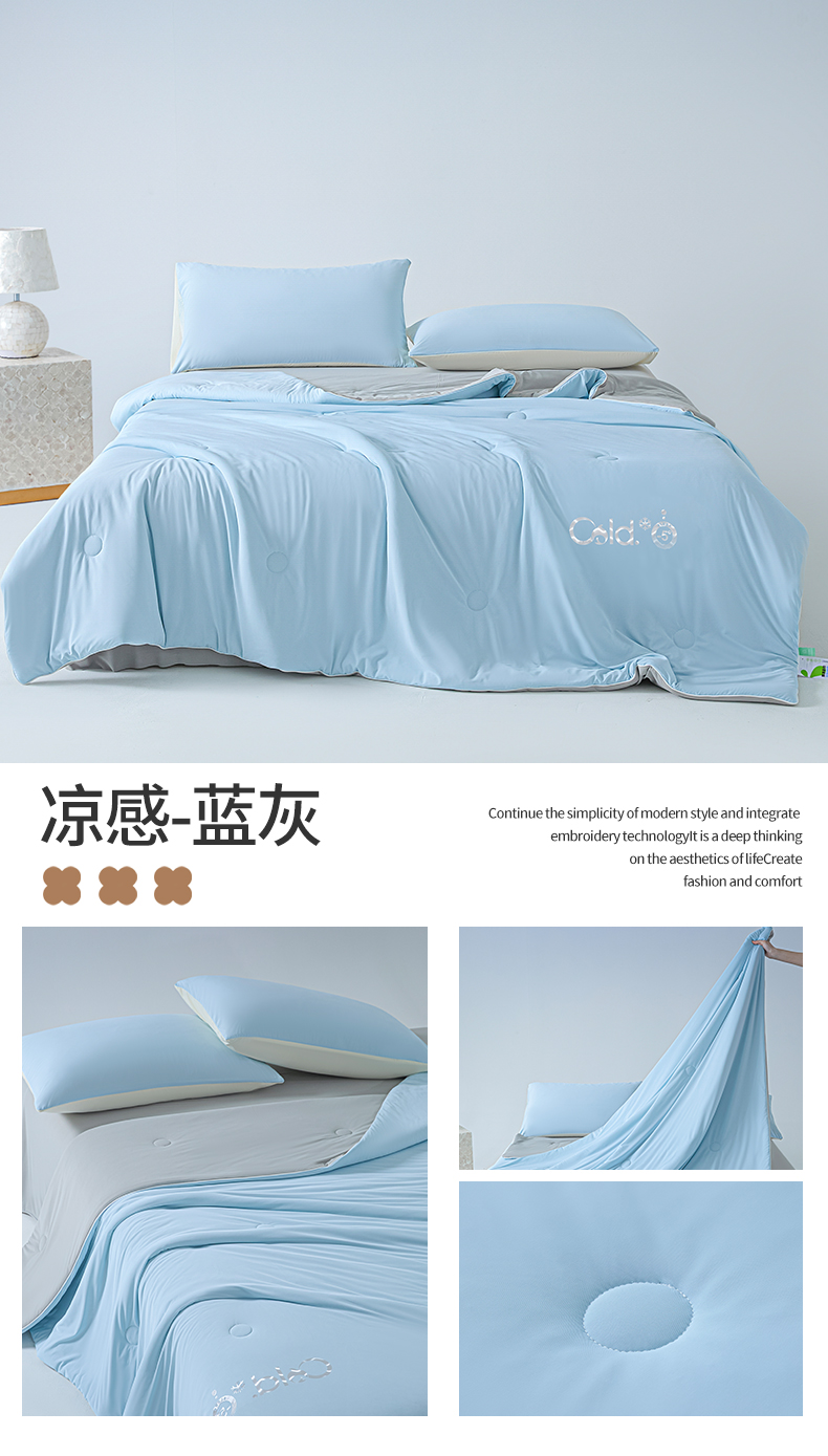 商品名称:永耀家纺 2026新款纯色双拼凉感丝大豆夏被夏凉被空调被 凉感-蓝灰