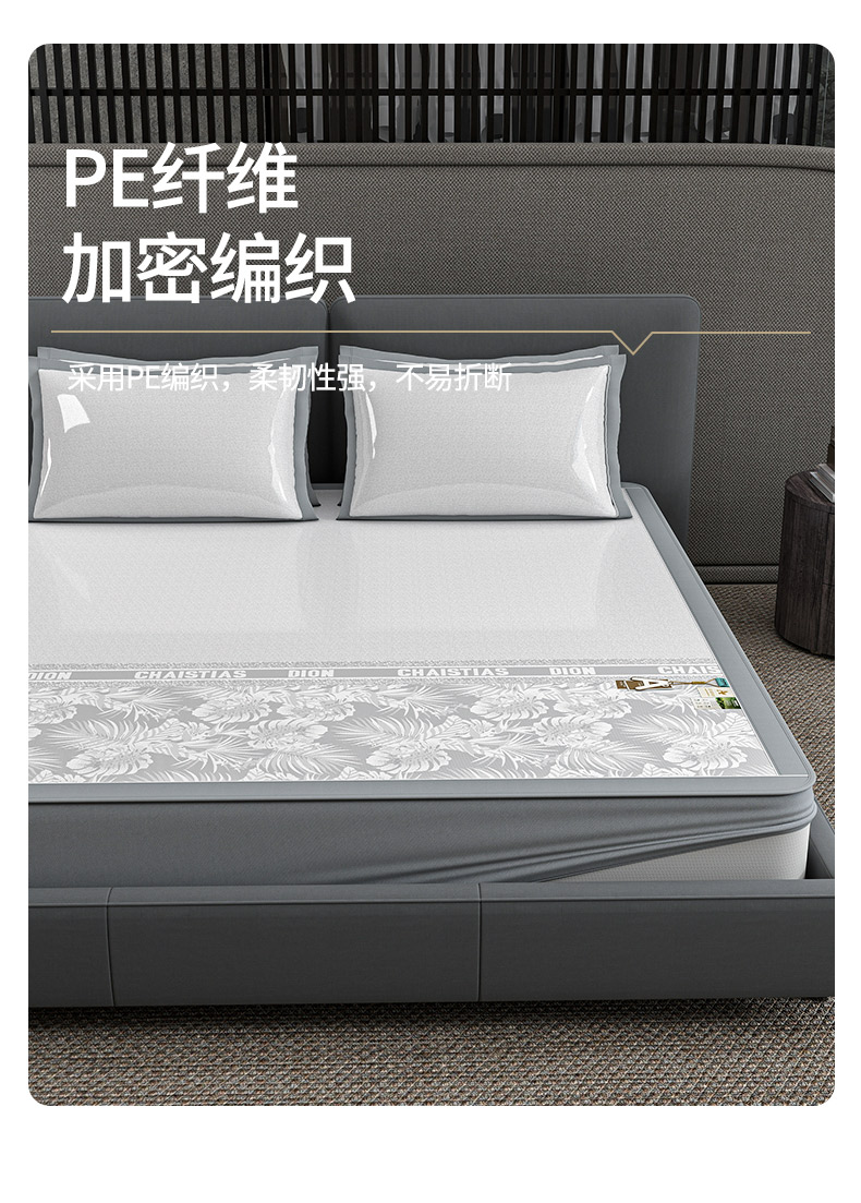 (总)小牛席业 2026新款【实拍风格】双PE高凉感-迪恩玫瑰提花冰丝席凉席竹席藤席冰藤席乳胶席豆豆席,灰色,粉色,蓝色,香槟