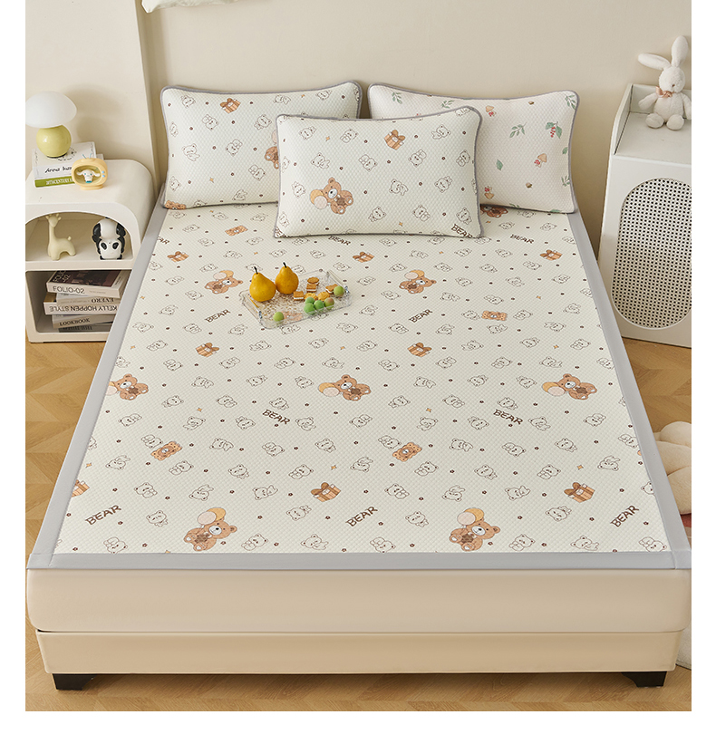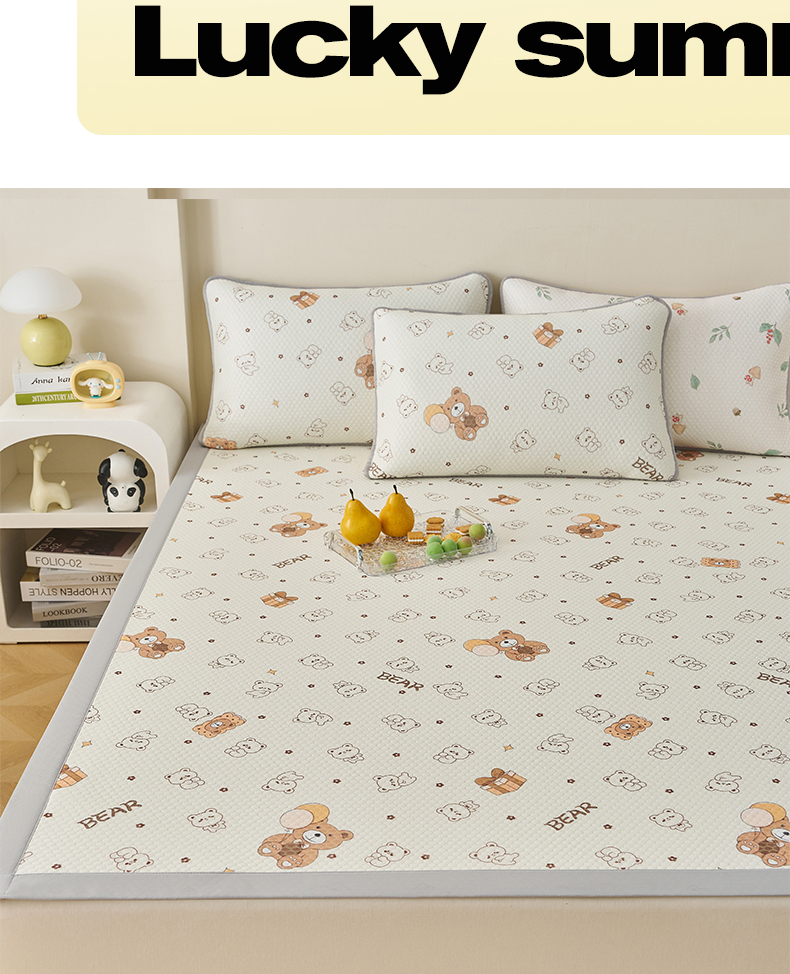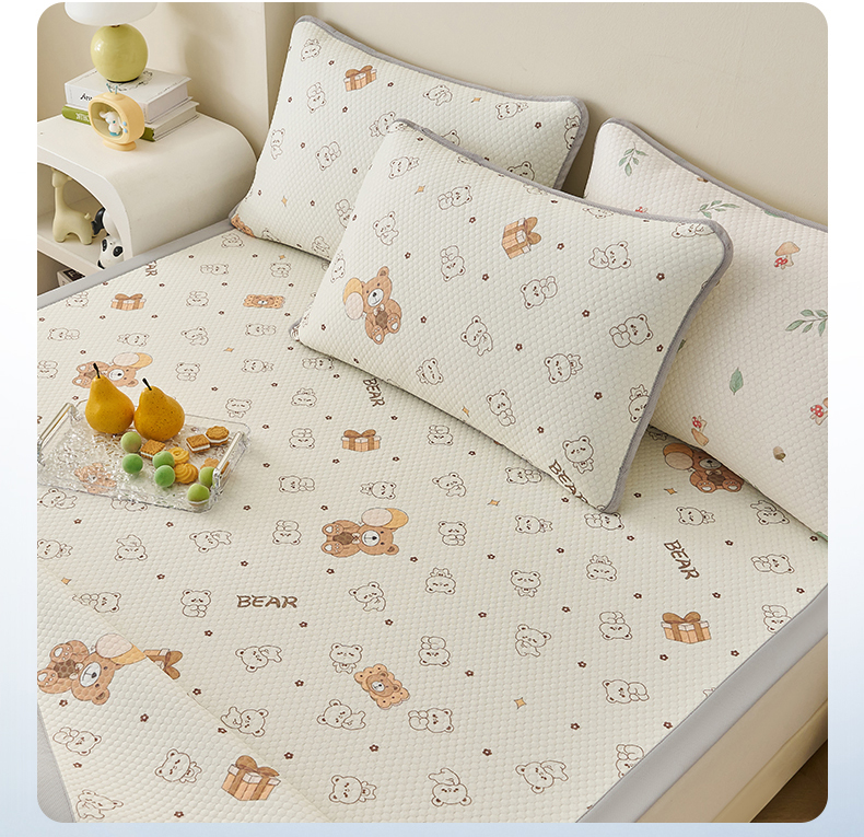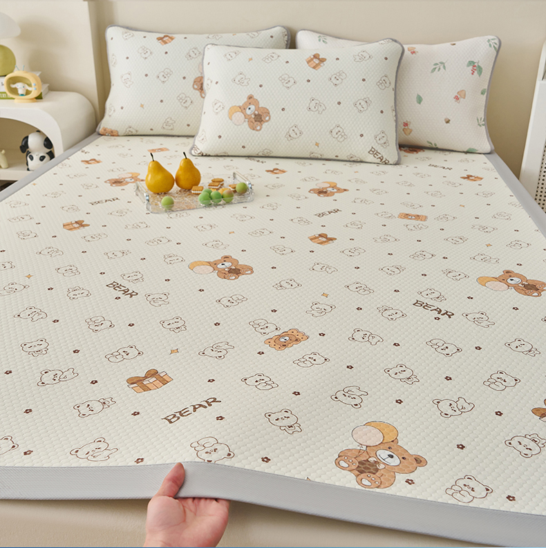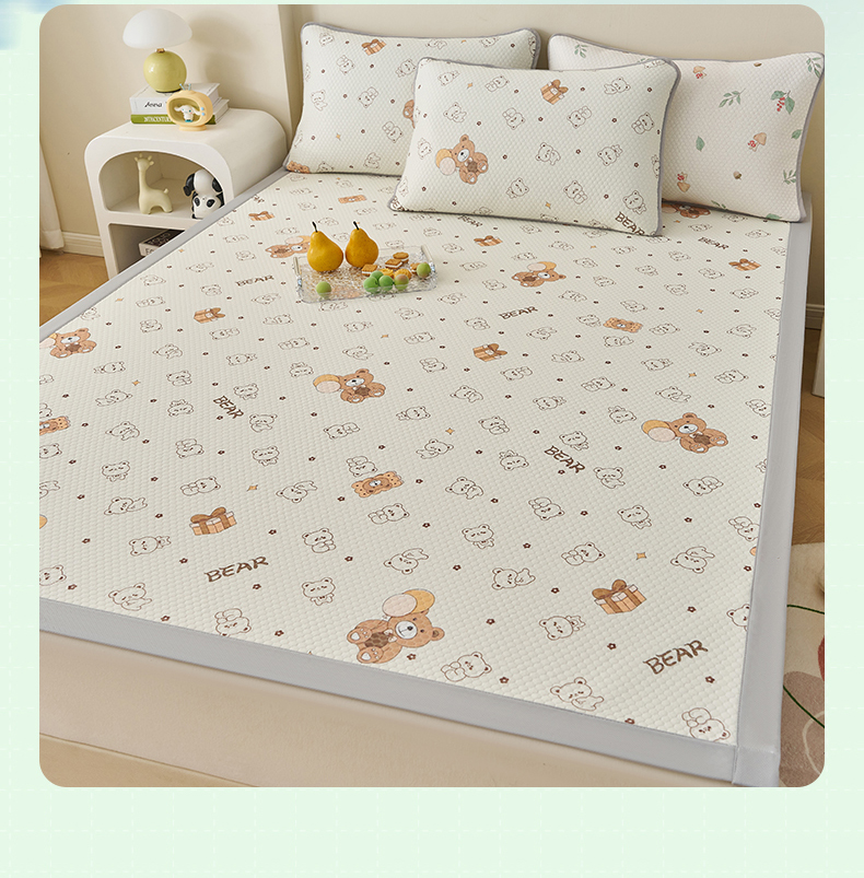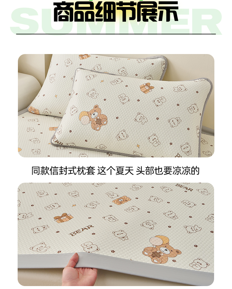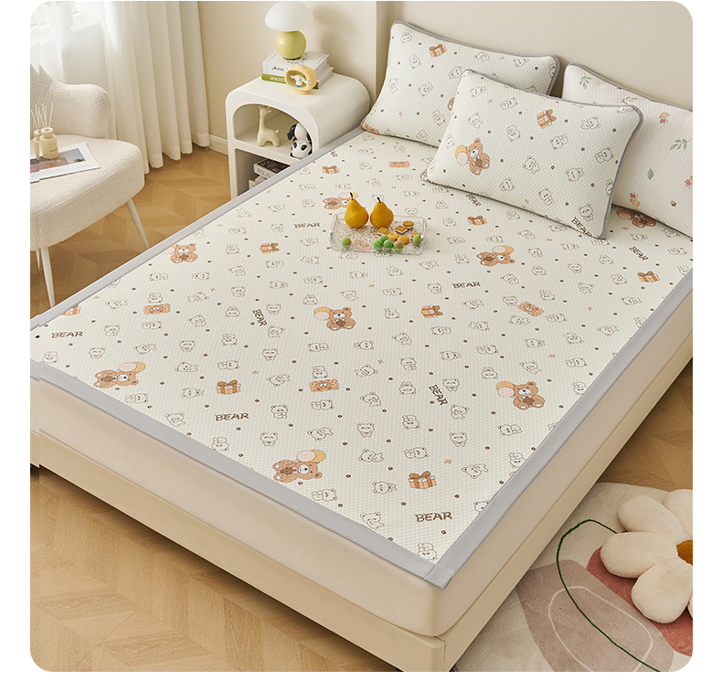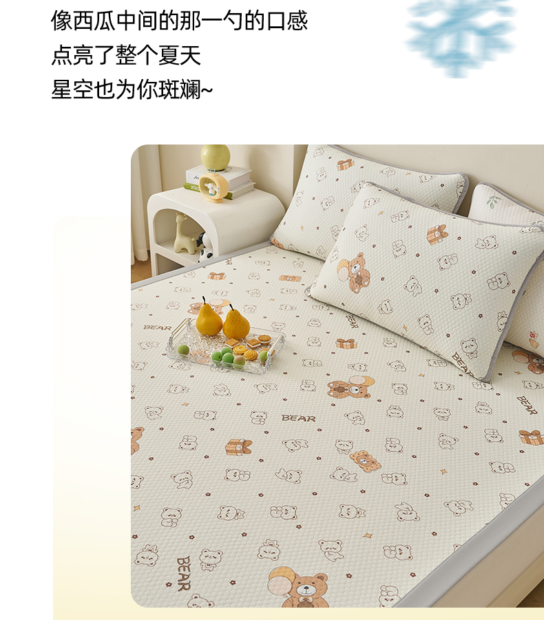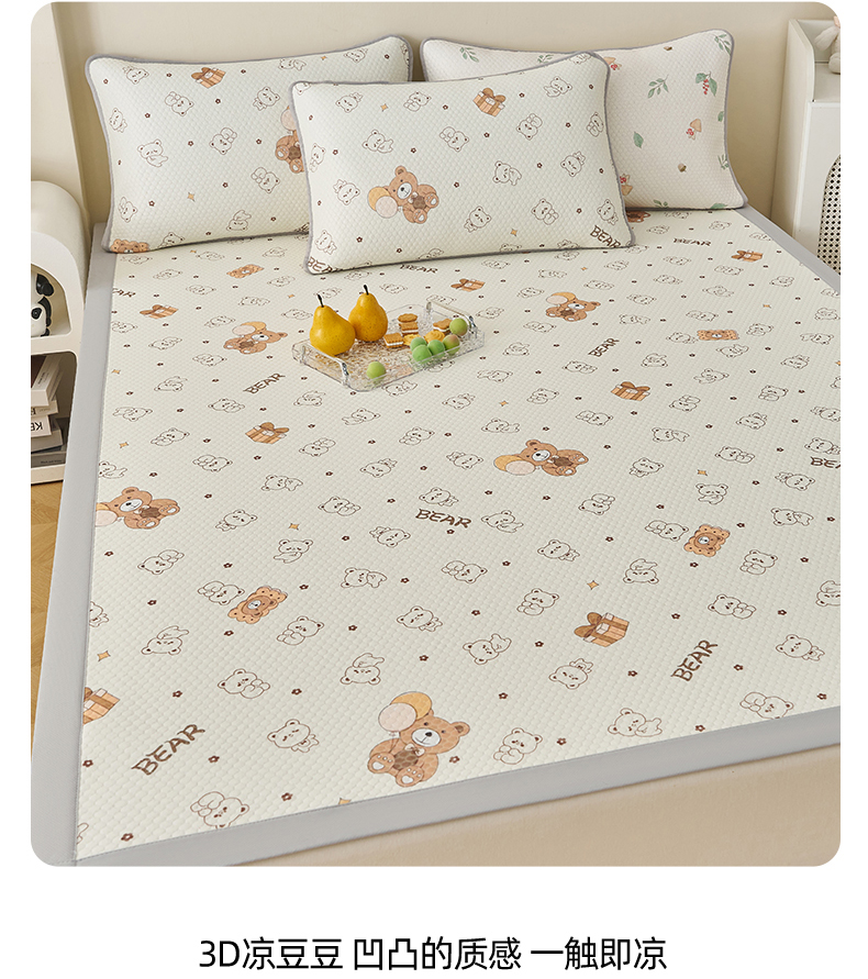 商品名称:奇丝雅 2026新款A类印花冰豆豆凉席三明治透气网冰丝凉席家用双人冰丝席床单可机洗大床图 大床款-饼干熊